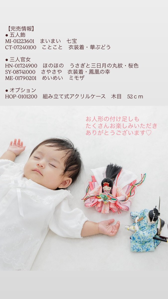 完売速報📢 たくさんお迎えいただきありがとうございます🌸 furacoco.co.jp/hina/soldout/ #ふらここ #雛人形 #五月人形 #初節句 pic.x.com/INd9YVZhSO