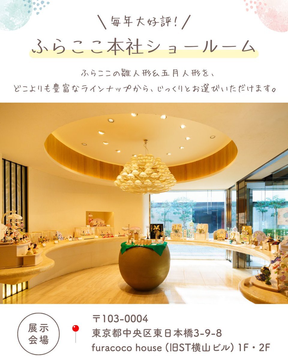 本日もふらここショールーム Open日🏠 平日は、ゆったりと ご覧いただけることも多いので ママと赤ちゃんだけで 2人でお散歩がてら下見に👀 なんて方ももちろん大歓迎です☺️💕 ご来場お待ちしております🙌 furacoco.ne.jp/showroom/ #ふらここ #ショールーム #雛人形 #五月人形 #ひな祭り #初節句 pic.x.com/l76cff2MCc