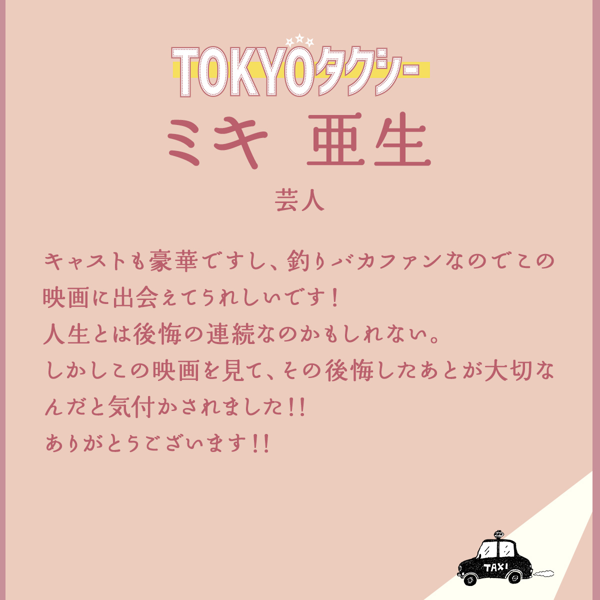映画『#TOKYOタクシー』 𓂃 オピニオンコメント🚕³₃𓂃 ➸ ミキ #亜生 さん 【芸人】 各界の著名人よりコメントが続々到着🌟 movies.shochiku.co.jp/tokyotaxi-movi… 11.21(fri) 人生が、輝く pic.x.com/vJPVZoMWMc
