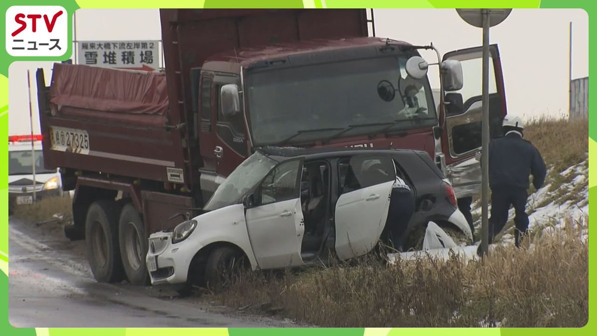 ゴミ収集車 身元不明のひき逃げ交通事故 長野駅のあの鰻屋さん近🙀悪質!! 北海道札幌東区 午前8時頃人が挟まれてるとQQコール、ダンプカーと乗用車2台の車が正面衝突 乗用車の男性意識不明… 丘珠空港ちかく🛩️ ⚠️路面凍結ブラックアイスバーンかお気をつけて 東京でも一日氷が溶けない所も #交通事故 pic.x.com/blTKXz1NDQ