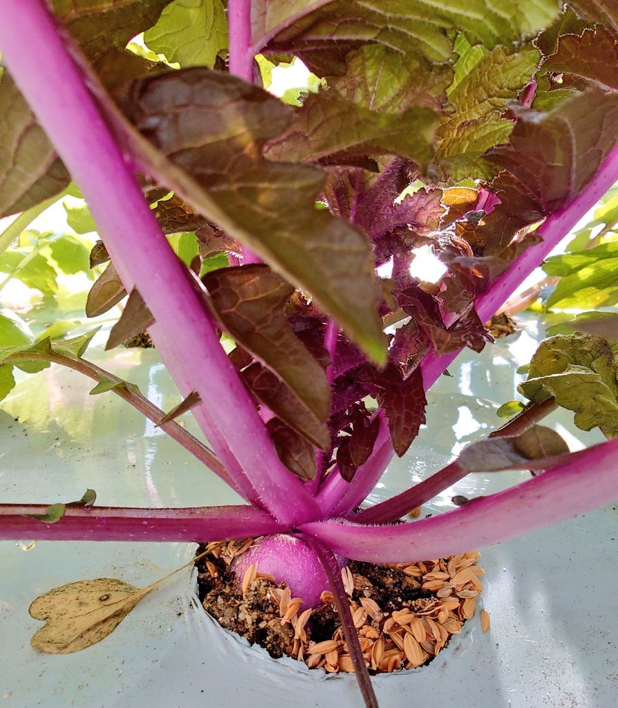 紫色が特徴のダイコン、京むらさき🟣 9月下旬に播種した第一陣の肥大が確認できました。 いよいよダイコンが姿を現します。収穫は月末くらいかな。 この品種は保存が良く、冷蔵庫の野菜室で半年ももちました🐧 採れるのが楽しみです。 #紫ダイコン #京むらさき #家庭菜園 #屋敷畑 #有機野菜 #無農薬 pic.x.com/o7cWG2f84m