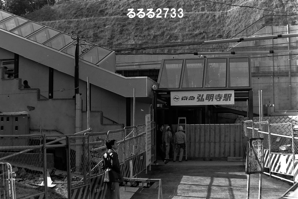 また #京急 #弘明寺 ネタとなるが、現在の橋上駅舎を使用開始したのが41年前の今日、1984(昭和59)年12月22日であった。この日撮影した写真を見ると、上りホーム側の階段は右手の斜面に駐輪場を建設中で、踏切を渡って下りホーム側からしか改札に行けなかったようだ。旧駅舎は先に取り壊され仮設駅舎 pic.x.com/4R3CA0bjeg