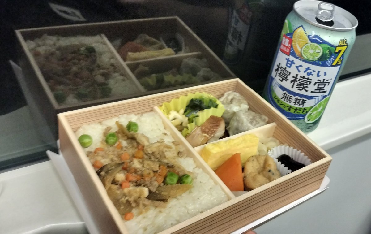 #京急 で横浜へ戻り #崎陽軒 の冬メニューに無料でもらった檸檬堂を抱えてボックス席で晩ごはん 長野で買ったくるみゆべしは味噌のような醤油味で不思議な味覚でした pic.x.com/AG25erdLsj