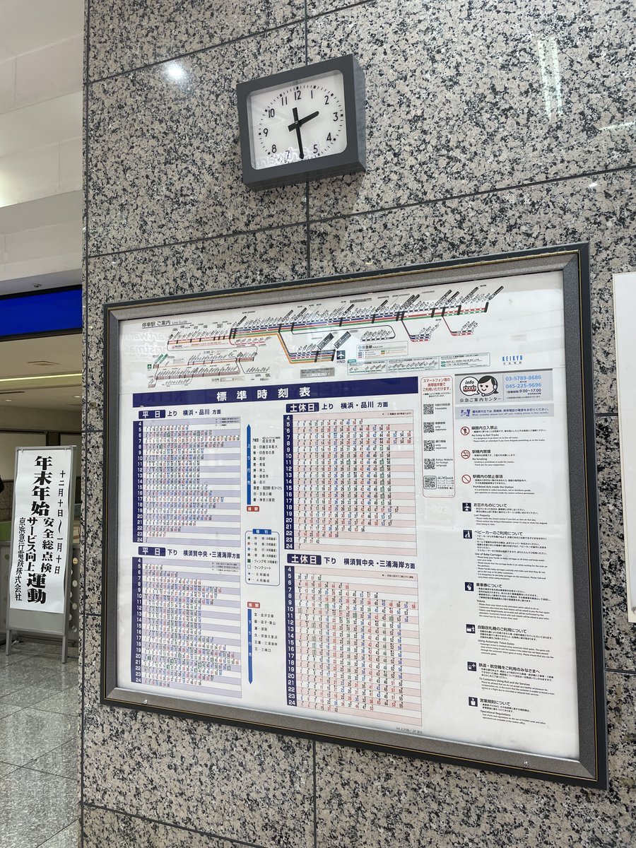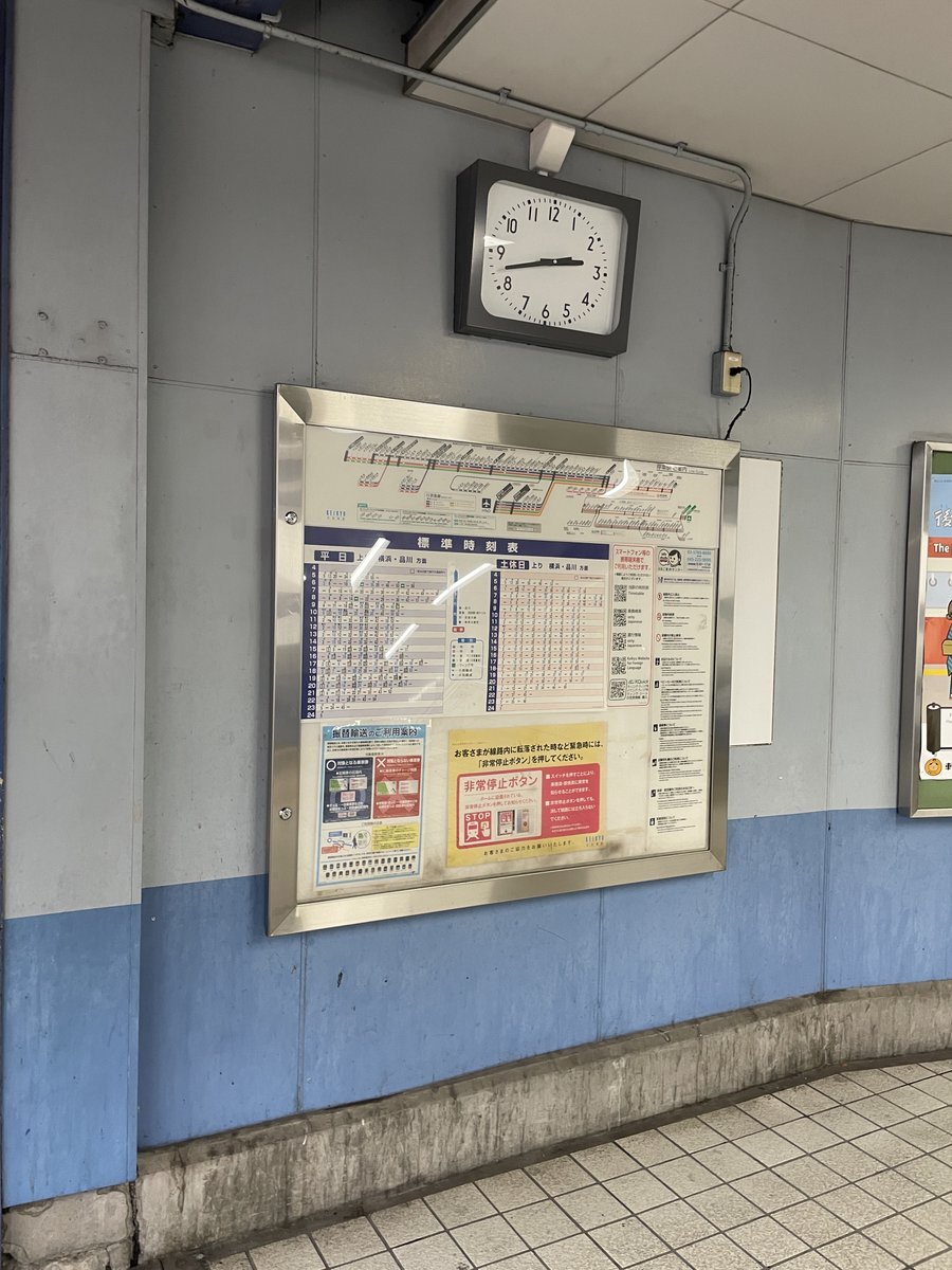 時計と時刻表掲示をセットで残し続ける姿勢は好き 小駅でも3~5個は設置してますよね 大きい駅だと10個近く設置してるのでは (というか発車案内装置もないのに撤去するのは論外だけど) #京急 pic.x.com/00sUAr78zL
