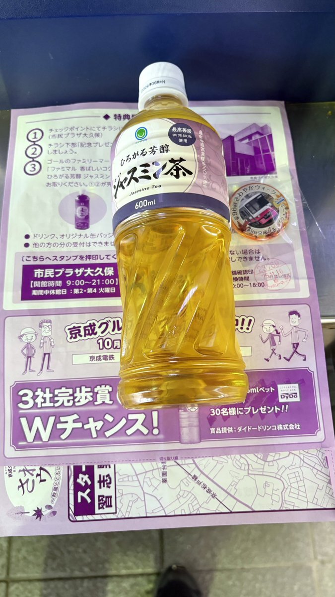 2時間20分ちょっとでゴール。 参加賞のジャスミン茶とバッジをいただきました。 実は(2)〜(3)間で道を間違えショートカットしてしまったので実際は8.5kmには満たないと思います。 #さわやかウォーク #京成 #実籾 pic.x.com/NGX0ZkMQus