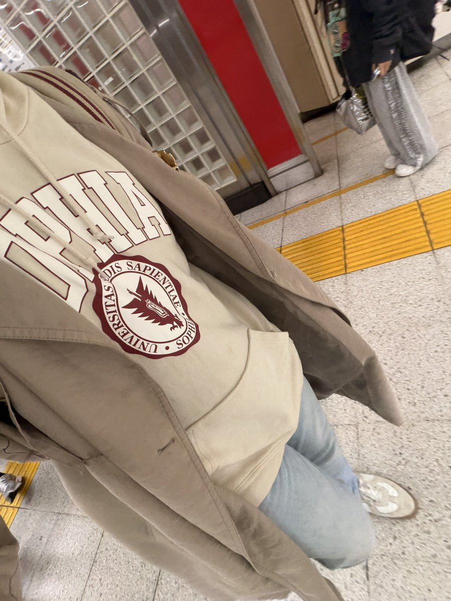 これ着てたら 京成の職員に 「上智生!?」って 話しかけられて はい!^ ^って答えたら めっちゃ話盛り上がった 京成の後輩職員に 「俺の大学の後輩だよ!」 って熱く自慢してた(笑) 京成のこういう所すき #京成 #上智大学 pic.x.com/7Bxnd99cHl