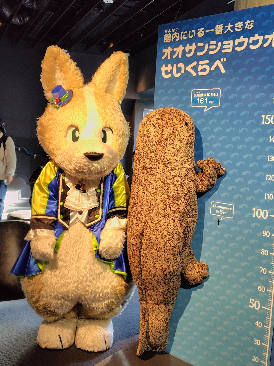 こーたとオオサンショウウオのせいくらべ✨✨  京都水族館の中で一番大きいオオサンショウウオは161cmもあるそうな!! #しばっこた #コギこた #京都水族館 pic.x.com/H06ZLIkxAA