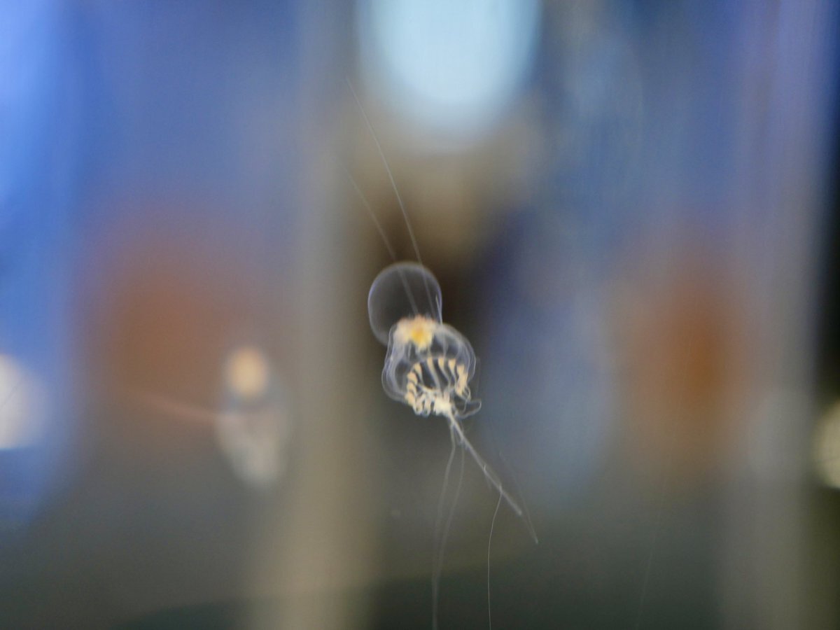 ちっちゃいイオリクラゲ …イオリクラゲだよな? #京都水族館 pic.x.com/hm58XdcVOG