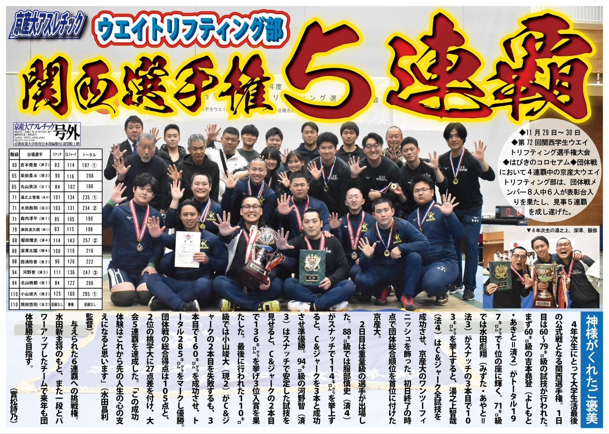 ◆号外◆ 【#ウエイトリフティング部🏋🏻♂️】 🎖️第72回関西学生ウエイトリフティング選手権大会 🗓️11月29日(土)〜30日(日) 📍はびきのコロセアム 団体戦関西5連覇達成🏆🌟 昨年度に続き新たな歴史を刻みました!! #京都産業大学 #京産大 #ksu #伝説は神山から #ウエイトリフティング #関西選手権 pic.x.com/LPG46ZaEZJ