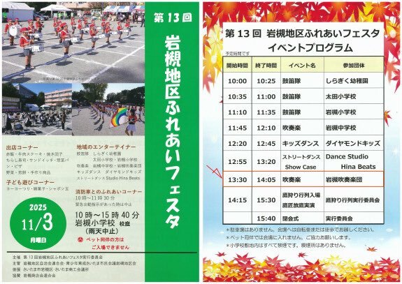 いよいよ明日❗️ たくさんのイベントがありますが、ぜひ 🦅城下町岩槻鷹狩り行列の最終地点である岩槻小学校の校庭へ🤗 日時:2025年11月3日(月) 会場:さいたま市立岩槻小学校(校庭) 演奏時間:13:30~14:05 #岩槻地区ふれあいフェスタ #城下町岩槻鷹狩り行列 #人形供養 #コスモスのさんぽ路 pic.x.com/docT9bpBKb