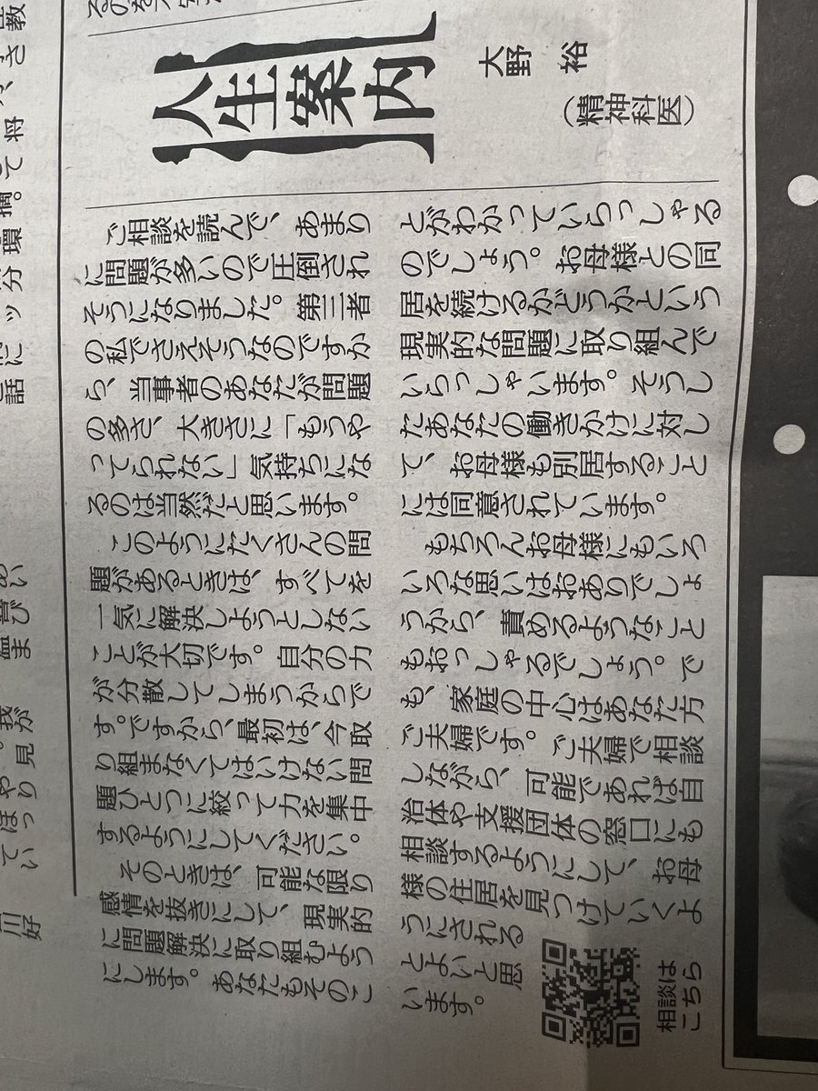 きょうの #人生案内 は40代会社員女性からの相談。同居する母と家族との関係が悪く、母に別居してほしいと伝えました。私と離れるのを不安がる母や周囲から「高齢の母を追い出すのか」と責められるのがつらく、私自身が出ていきたい衝動に駆られます。 #悩み相談 #読売新聞 yomiuri.co.jp/jinsei/2025121…