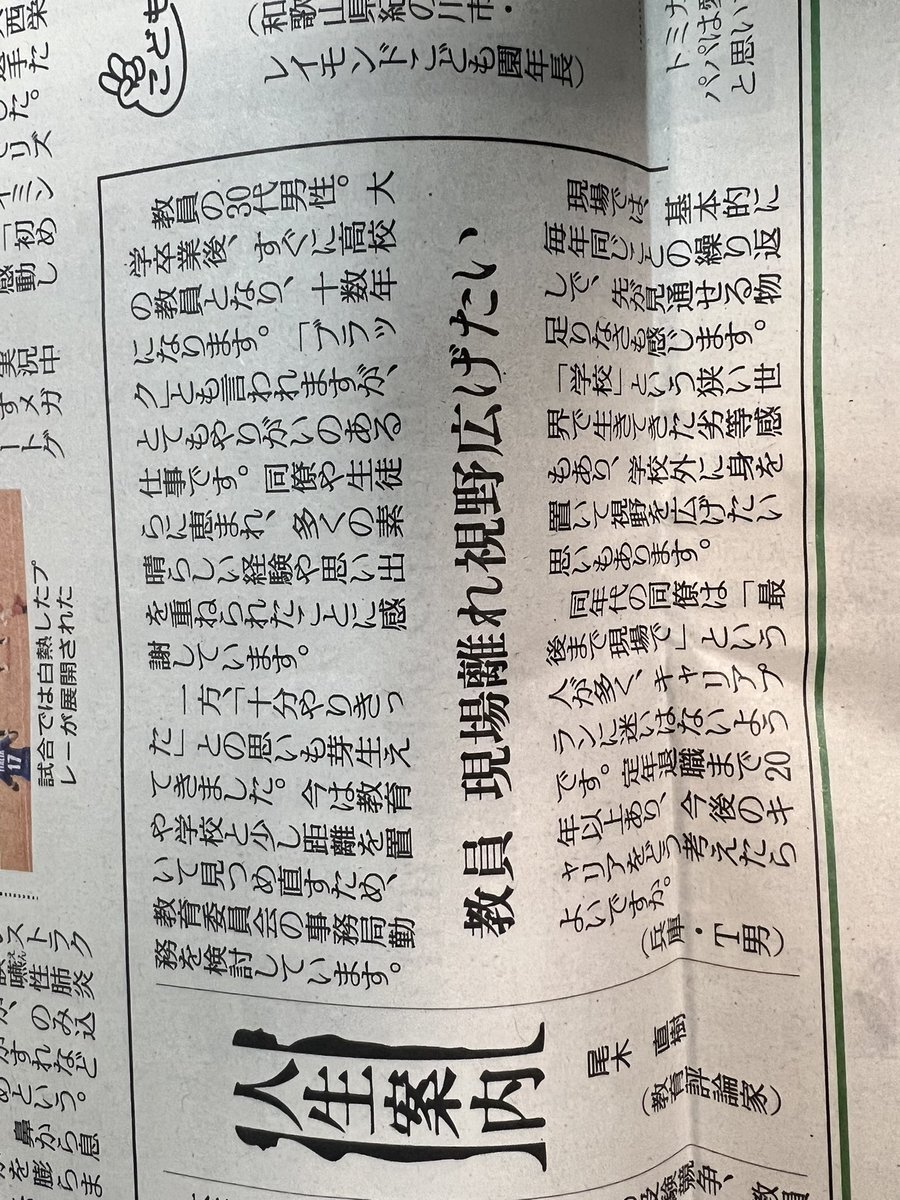きょうの #人生案内 は30代の女性保育士からの相談。10年以上現職で働き、子どもたちと過ごす毎日は喜びに溢れ、やりがいも感じます。その一方で現場は慢性的な人手不足で体力的にも精神的にも限界を感じ、仕事を続けるか悩んでいます。yomiuri.co.jp/jinsei/2025120… #悩み相談 #読売新聞