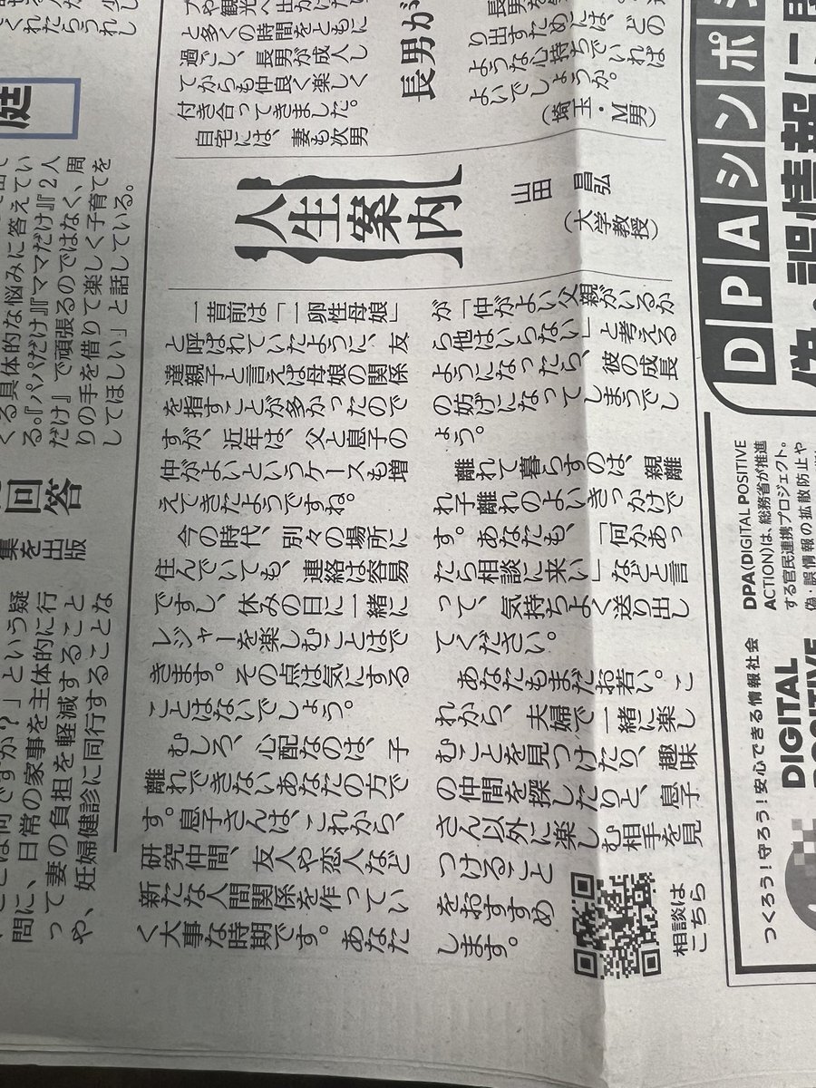 一人息子なので過保護に育てた部分があると思います。中学生で突き放されたときは、落ち込みました。が、そのお陰で推しと出会うことができました。少し距離ができたことで前よりいい親子関係になった気がします。 #人生案内 pic.x.com/N9ZHOoGtcT
