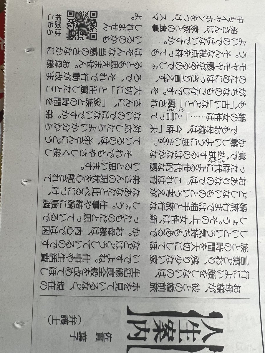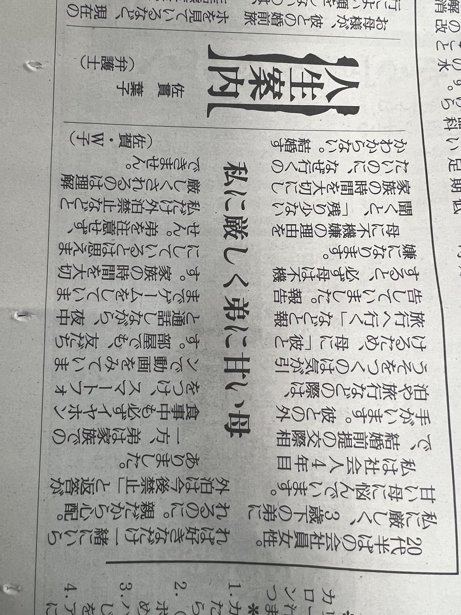きょうの #人生案内 は20代半ばの会社員女性からの相談。私に厳しく、3歳下の弟に甘い母に悩んでいます。交際相手との外泊を報告すると、必ず母は不機嫌になります。一方、弟は食事中もイヤホンをつけ、スマホで動画をみていても注意されません。 #悩み相談 #読売新聞 yomiuri.co.jp/jinsei/2025121…