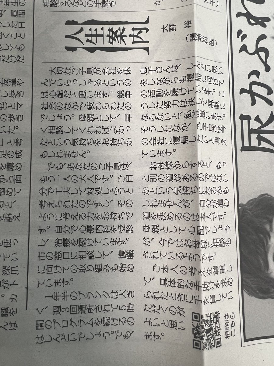 きょうの #人生案内 は50代パート勤務の女性からの相談。IT系企業に入社5年目の息子は、上司のパワハラが原因で1年半休職。現在は復職支援のプログラムを受けています。息子に元気でいてもらうためにはどうしたらよいですか。 #悩み相談 #読売新聞 yomiuri.co.jp/jinsei/2025120…