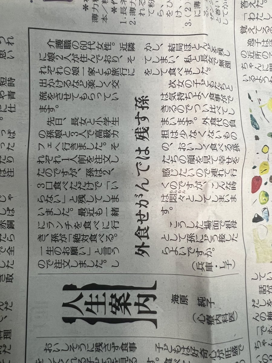 きょうの #人生案内 は60代女性からの相談。小学生の孫娘は外食で一人前を頼んでも、ほとんど食べずに残してしまいます。見ていて悶々とするようで、祖母としてどう接したらいいのか悩んでいます。 #悩み相談 #読売新聞 yomiuri.co.jp/jinsei/2025120…