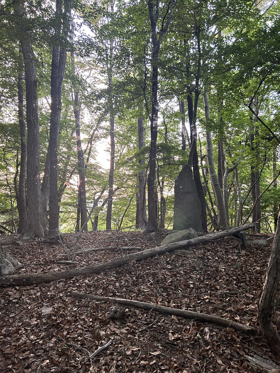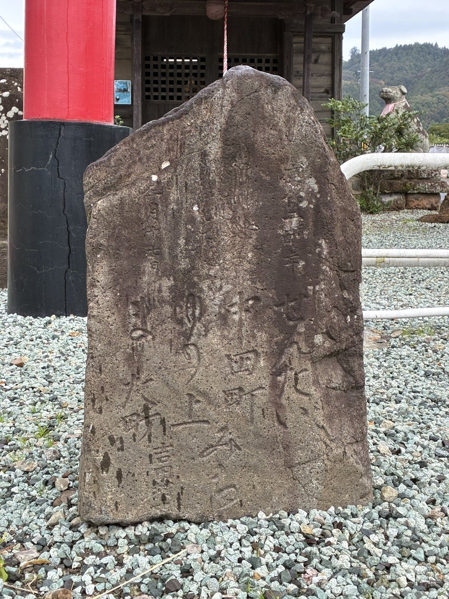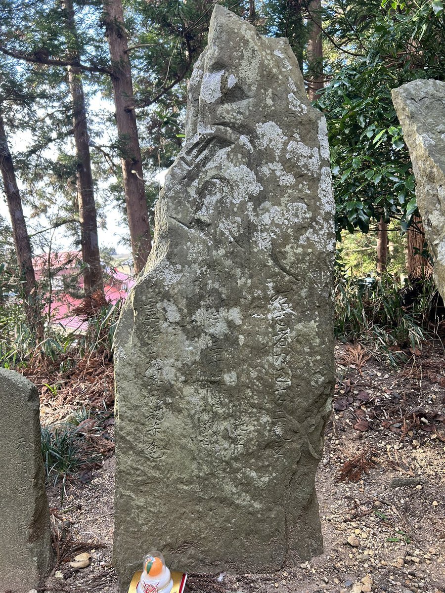 というよりかは、小枝と八幡神社旧社地の間に挟まれた山の中に、件の板碑らしきものは立っているわけなんだが。……と、ここまで調べられたところで、件の碑がいったいどのようなものであるかはつゆも分からない。どう頑張っても、私の目には板碑にしか見えなかったというだけ。 #今日のいしぶみ pic.x.com/DicTOvQ4JF