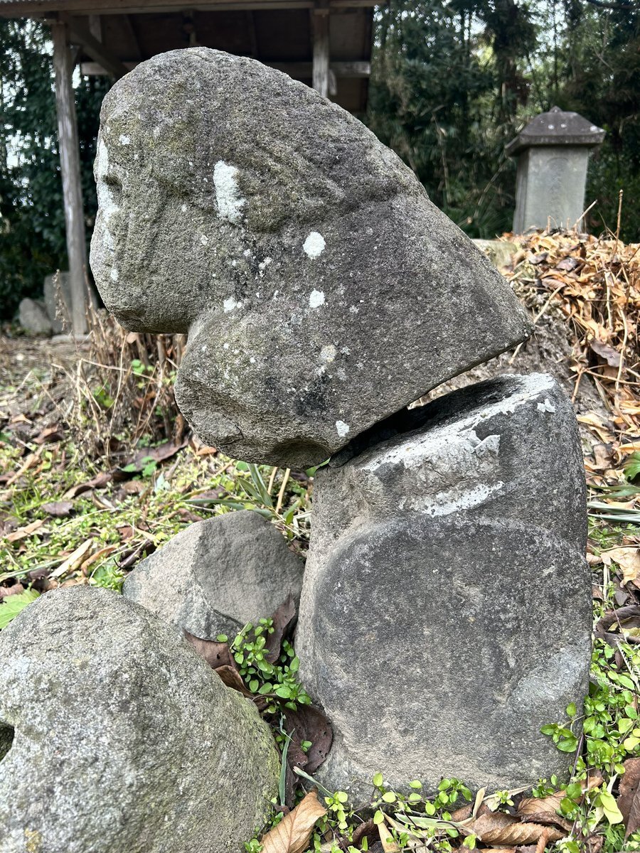 最初に挙げた狛犬さんには、その背中に「天明三癸卯年三月三日」(1783)の紀年銘がある。もし、この天明三年銘像が損壊した先代狛犬さんの代打ちであるなら……その先代さんと対になっていたであろう、半壊の狛犬さんはどれほど古いのか。安永ではあるまい。明和? まさか……宝暦? #今日のいしぶみ pic.x.com/fg7kTlUUBI