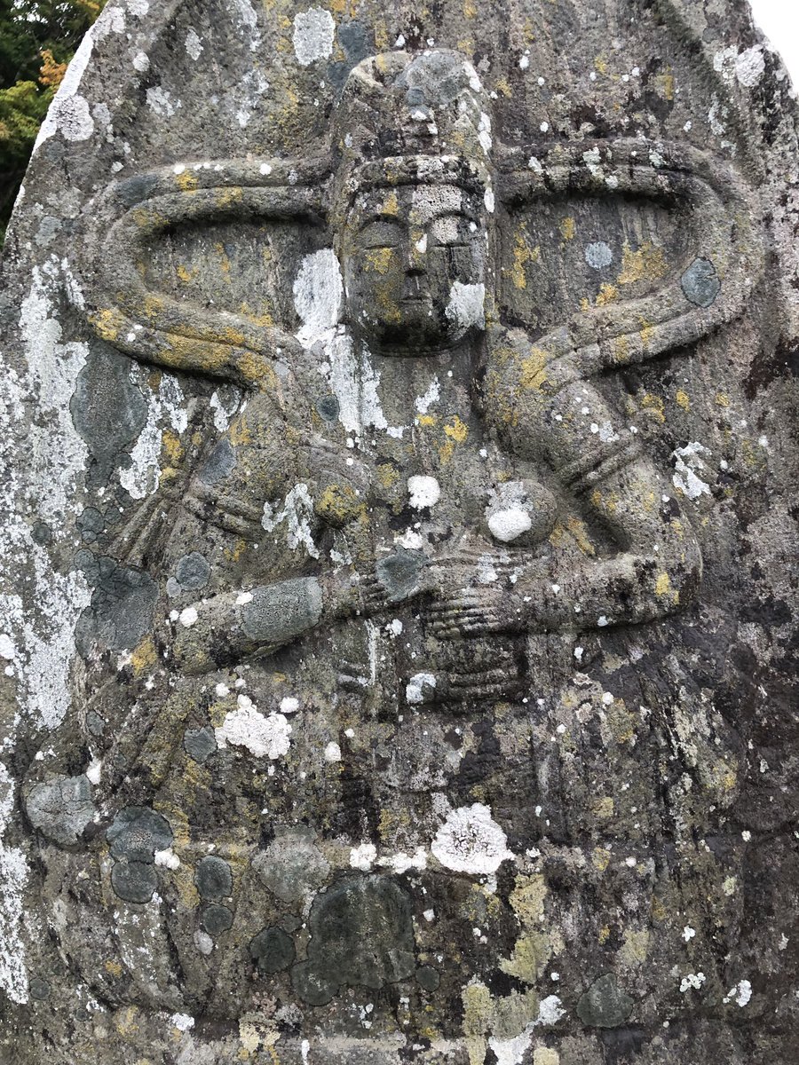 つまり、立像塔という“一定の形態”とは異なる坐像塔・半跏像塔に、同じような特徴が出てくるかは分からない、ということ。具体例として、石巻市南境・金蔵寺の明和五年銘坐像塔(1768)を挙げてみる。寛政年間以前の刻像塔だけれども、天衣は……ご覧の通り。 #今日のいしぶみ pic.x.com/k7wVFSR0tr