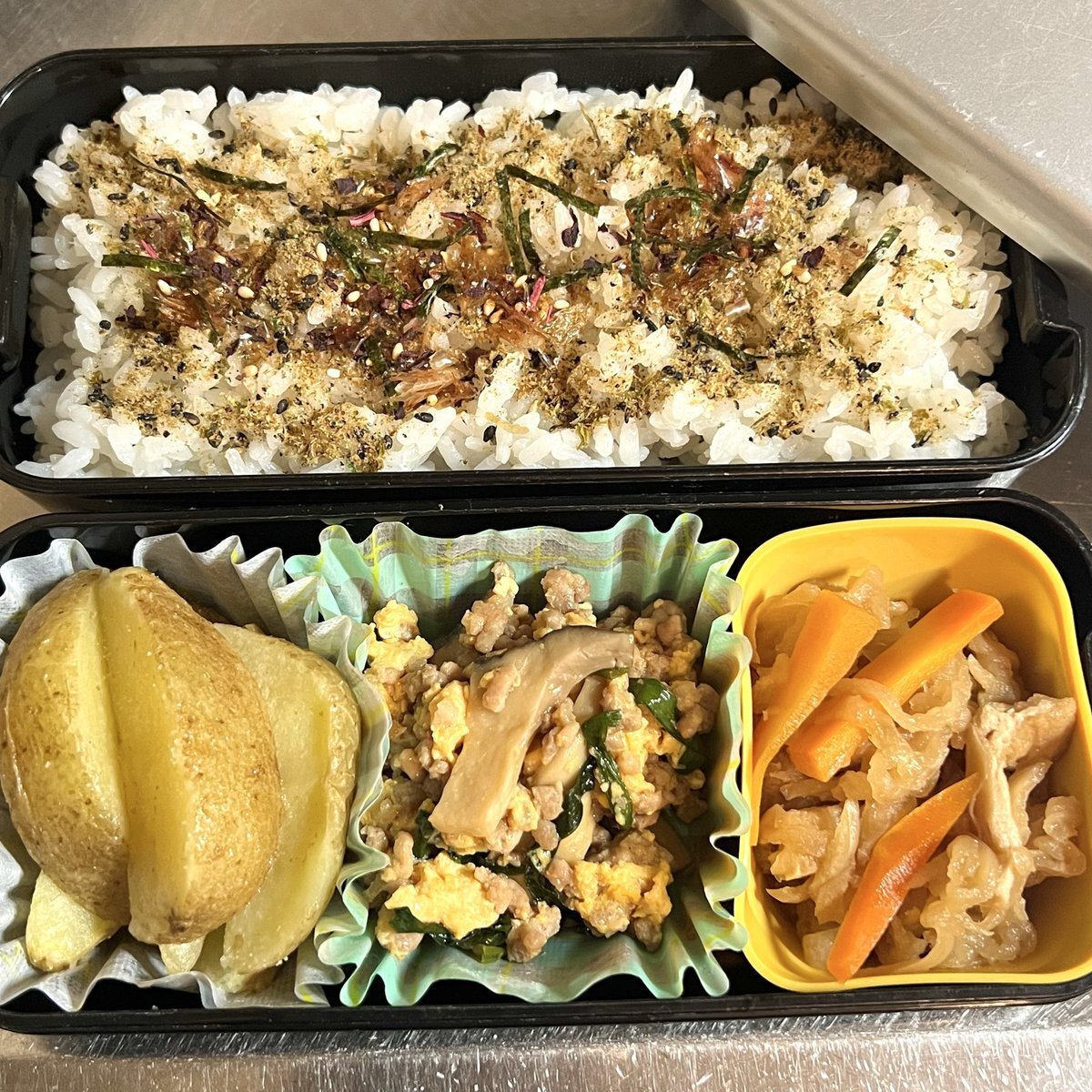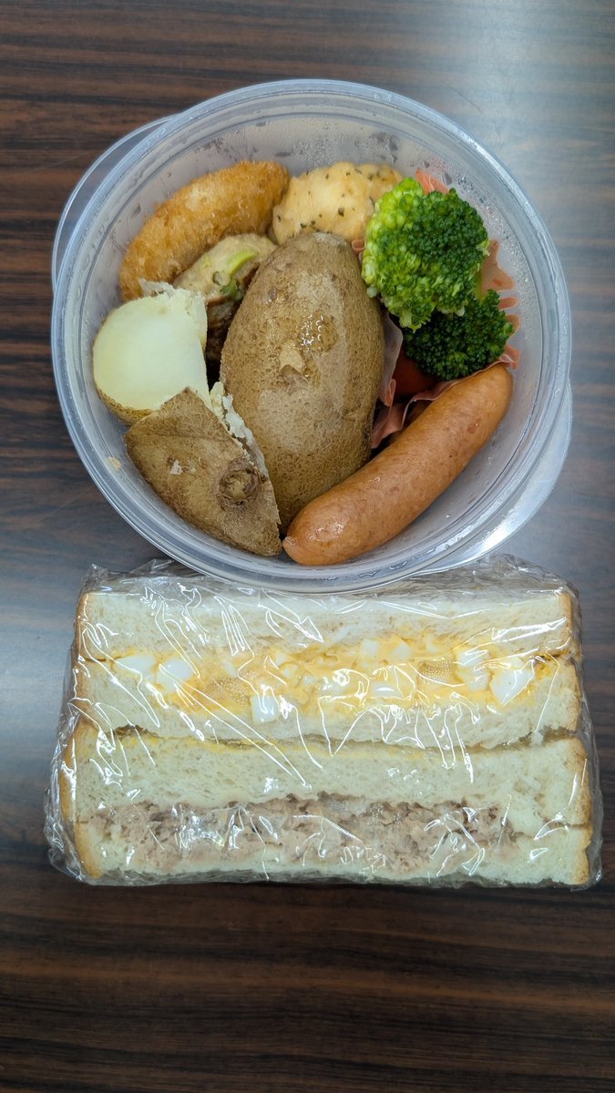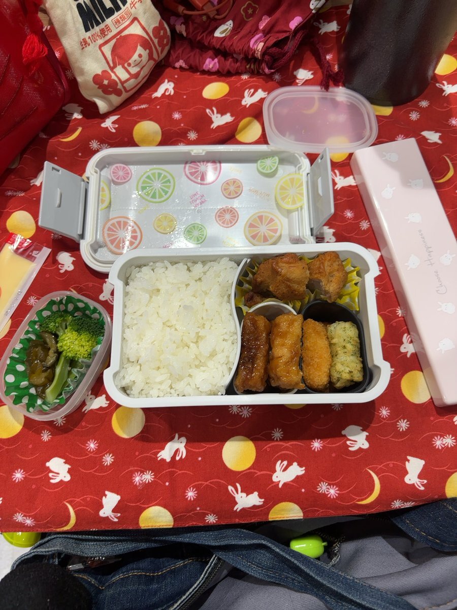 雨☔だけど、歩く時間帯には降られない、不思議 朝、撮り忘れて、食べる直前に気付いて撮った一枚 唐揚げ、肉どうふ、白身魚のフライ、青海苔ポテト、ブロッコリー🥦に漬物 #今日の弁当 #いつかの弁当 pic.x.com/YD8BBnyudY