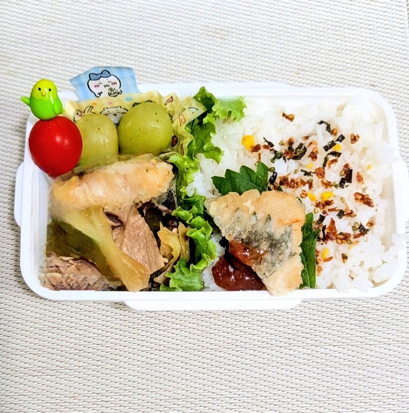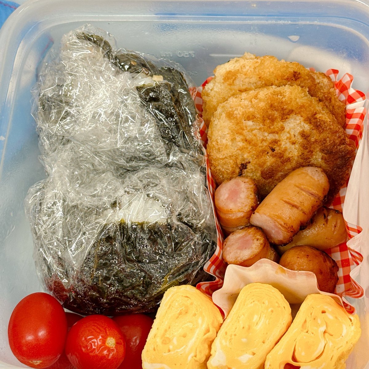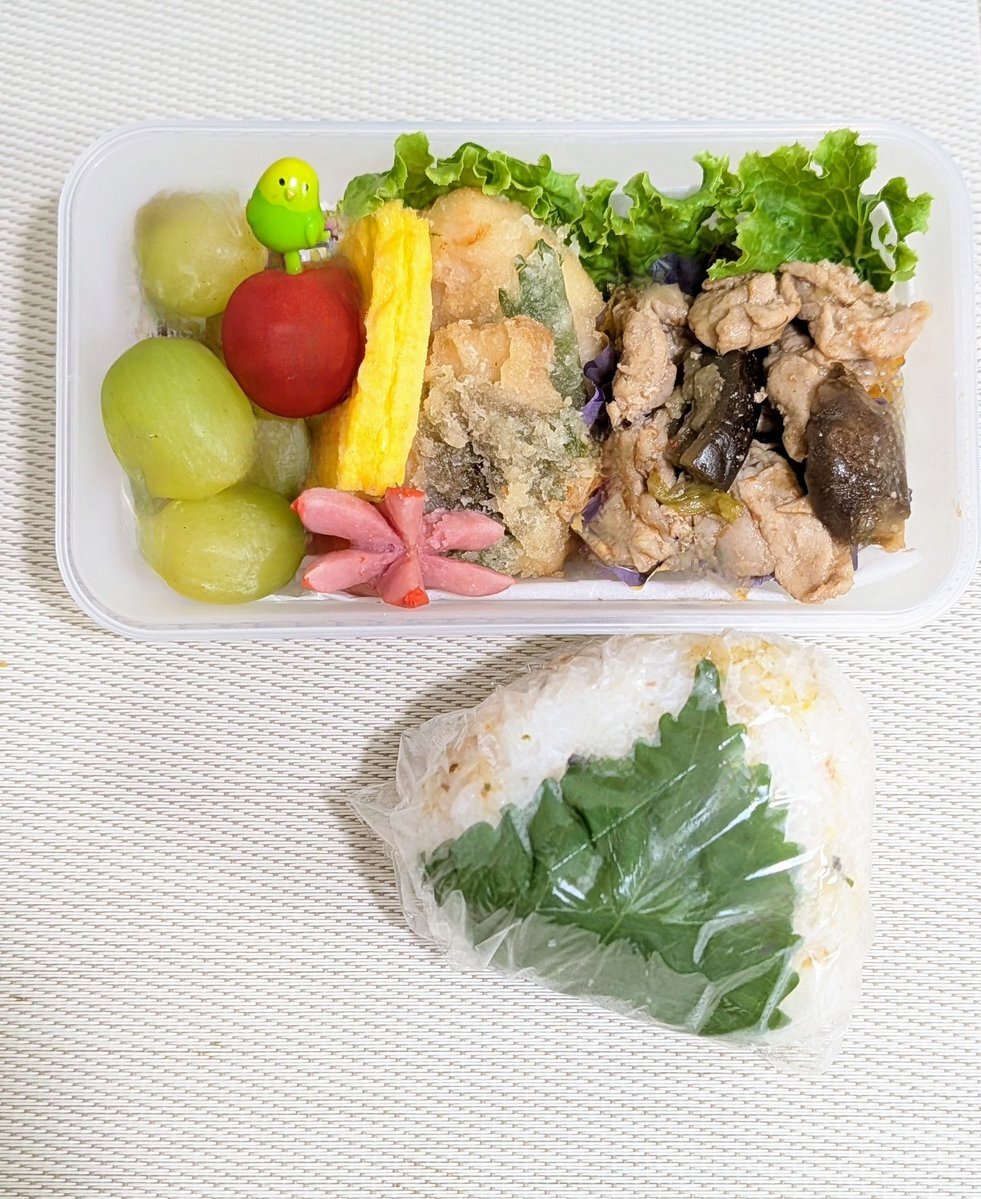今日の弁当🍱 ・鮭おにぎり🍙 ・🐷豚🍆茄子炒め ・🥚卵焼き🔴ウインナー ・🐔ささみ揚げ ・トマト🍅・ぶどう🟢 今日も1日 元気に 過ごせます様に🐻✨ #今日の弁当 🍱 #お弁当記録 #OnigiriAction pic.x.com/9HzhPDzFpf