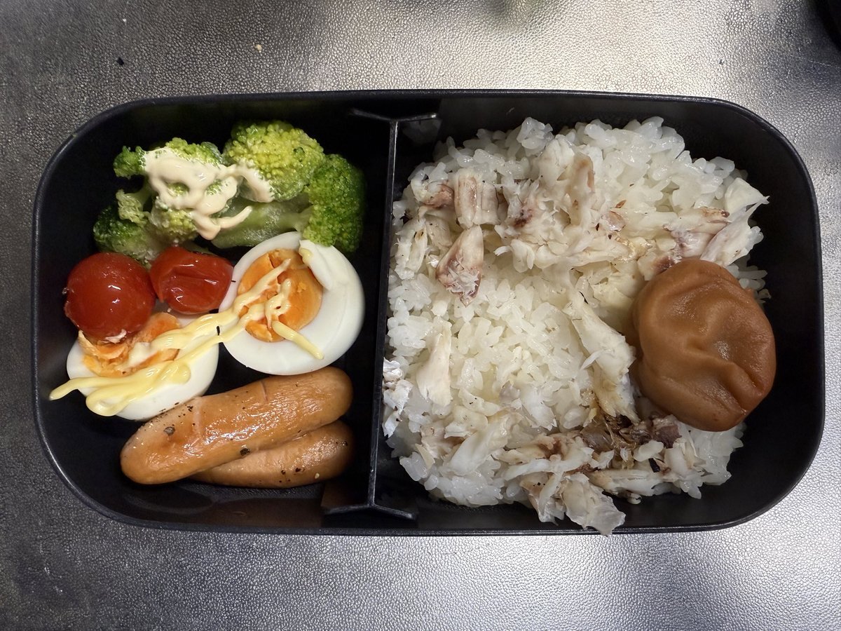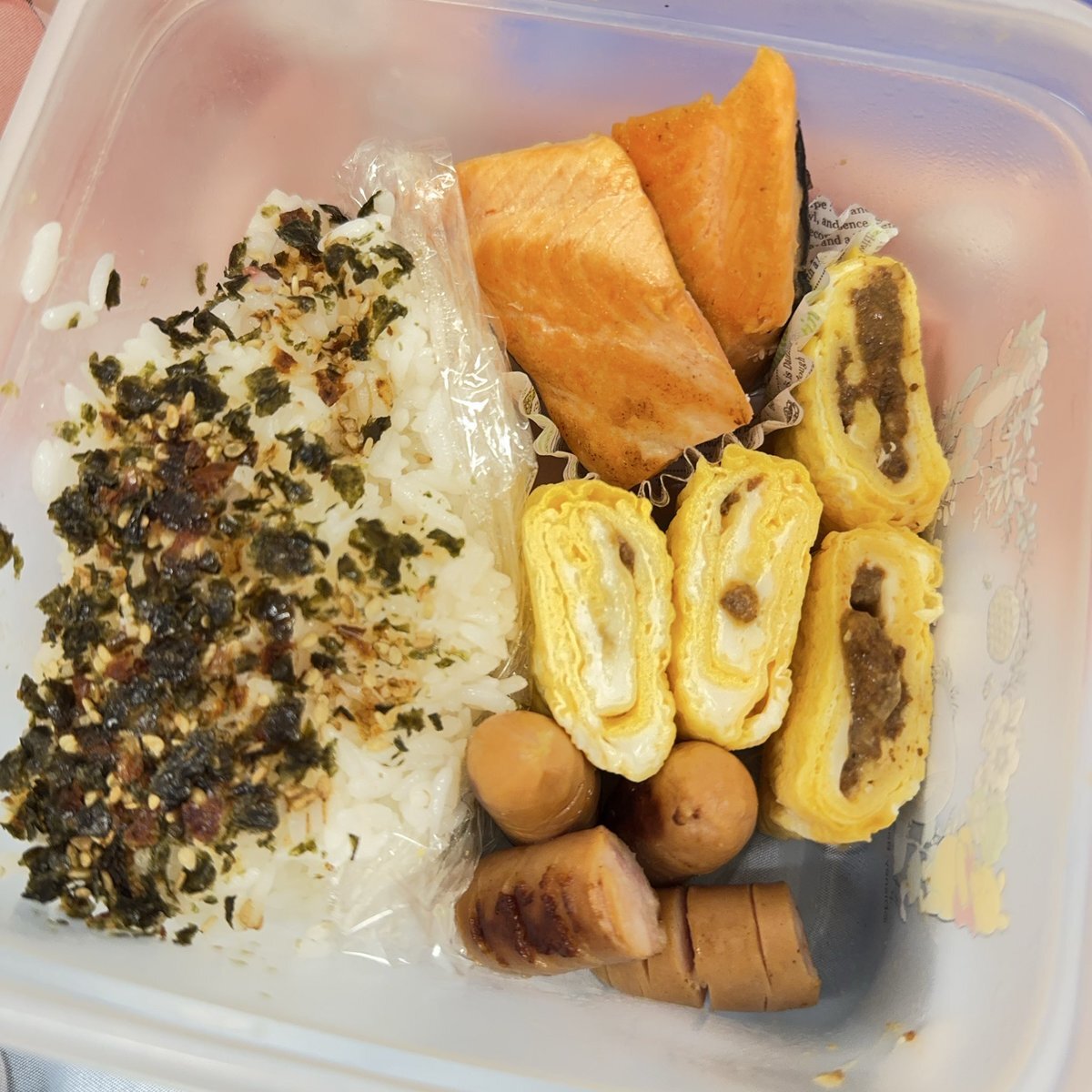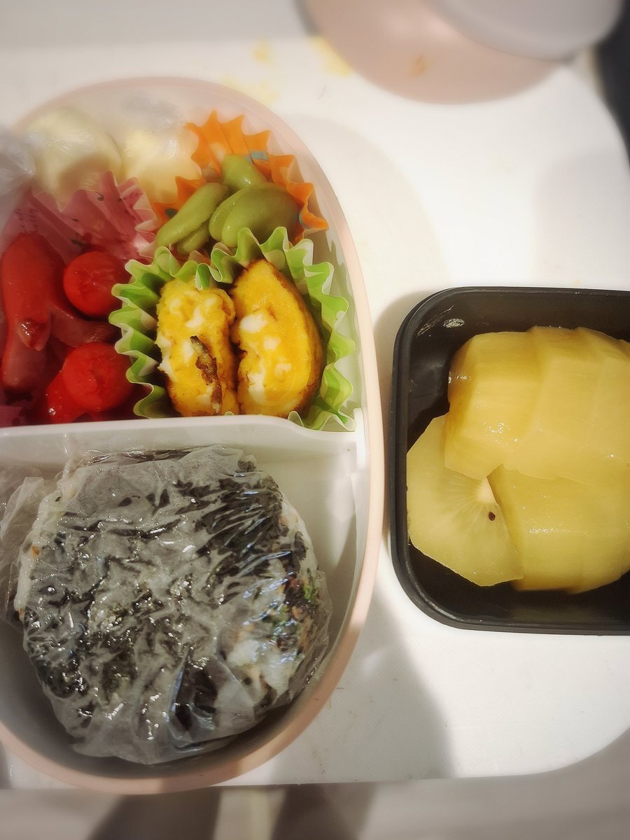 今日の弁当🍱 ・鮭おにぎり🍙 ・🐷豚🍆茄子炒め ・🥚卵焼き🔴ウインナー ・🐔ささみ揚げ ・トマト🍅・ぶどう🟢 今日も1日 元気に 過ごせます様に🐻✨ #今日の弁当 🍱 #お弁当記録 #OnigiriAction pic.x.com/9HzhPDzFpf