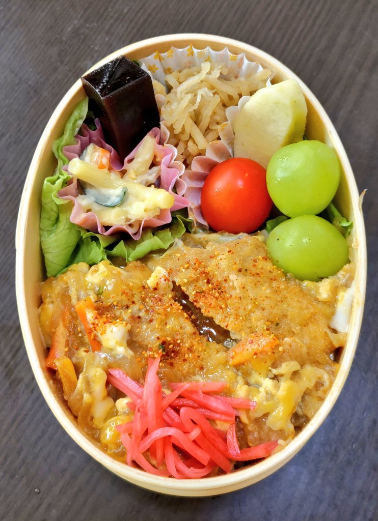 #今日の弁当 カツ丼弁当‼️ 甘柿をもぎに行った後遺症で わき腹が痛い🤕 高いところの柿は諦めたのに 背伸びしたからかね 昨年はカラスに全部やられたんで早めに収穫したけど 味がイマイチかな? pic.x.com/BvbQOqk2wU
