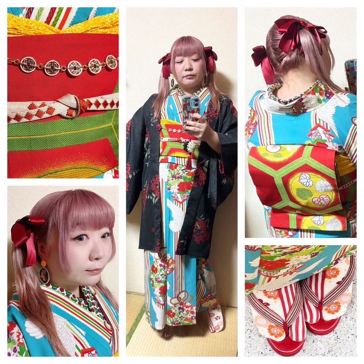 向きを変えて撮るより、反転加工すれば いい事に気づきました。正面は左前になってしまいますが 反転(🟢´ε`🟢) 着物コラージュ👘 #今日の着物 #着物コーデ #着物好き ウール長着、 シンデレラ柄半幅帯 帯留 水引細工簪(自作) pic.x.com/9kOR9XeA4i
