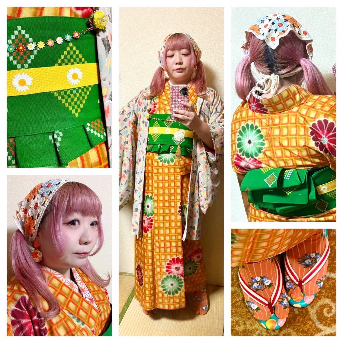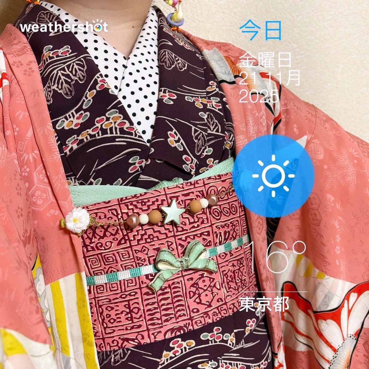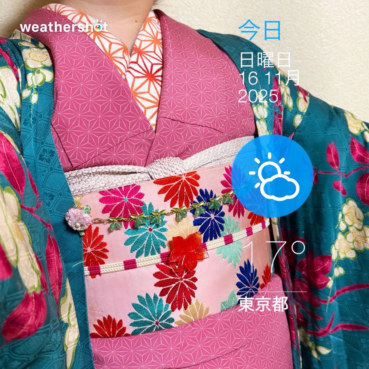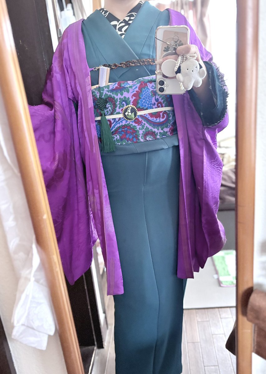 #今日の着物 カラフル 木々 #着物 にオリエンタル名古屋帯。ピンク 菊 羽織。 ꫛꫀꪝ着物 キモノセンエン 帯 おばあちゃんから 三分紐 #kimonotento 帯留🎀 #latelierBonBon 羽織 骨董市 羽織紐クリップ #菫コルセット 羽織紐 キャンドゥ マスクアクセサリー ヘアリボンゴム セリア ピアス🪿 SHEIN pic.x.com/BhycRT7NKl