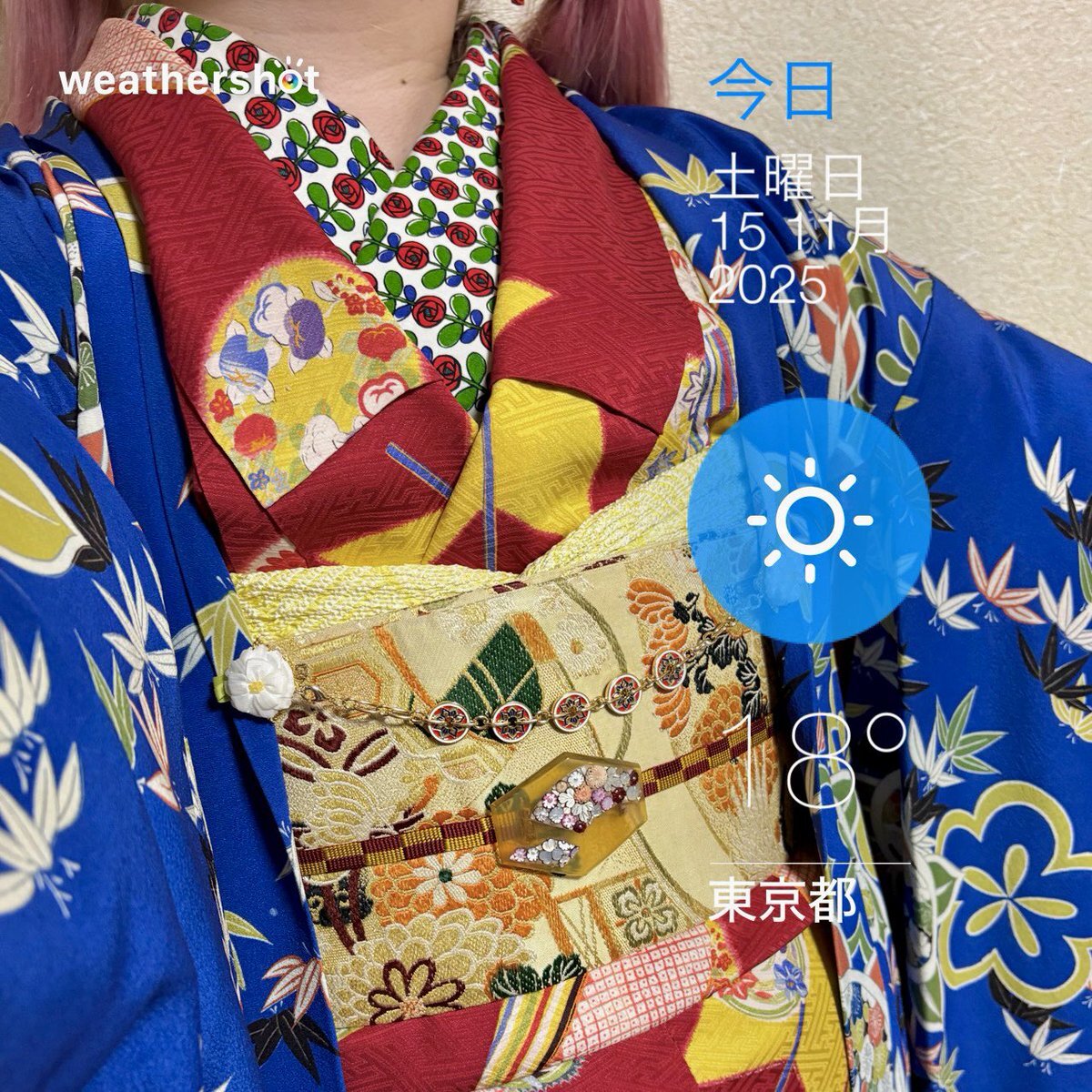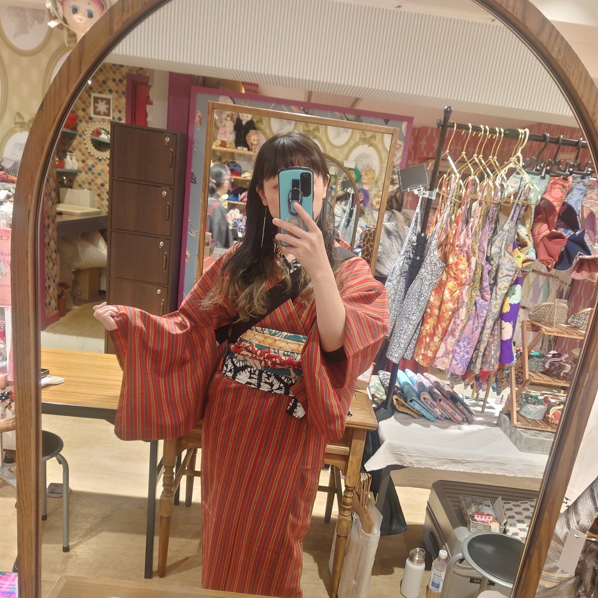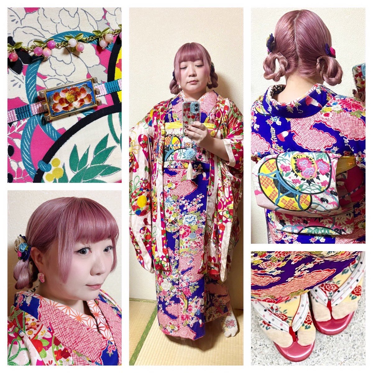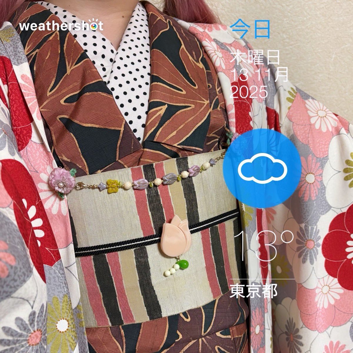 #今日の着物 カラフル 木々 #着物 にオリエンタル名古屋帯。ピンク 菊 羽織。 ꫛꫀꪝ着物 キモノセンエン 帯 おばあちゃんから 三分紐 #kimonotento 帯留🎀 #latelierBonBon 羽織 骨董市 羽織紐クリップ #菫コルセット 羽織紐 キャンドゥ マスクアクセサリー ヘアリボンゴム セリア ピアス🪿 SHEIN pic.x.com/BhycRT7NKl
