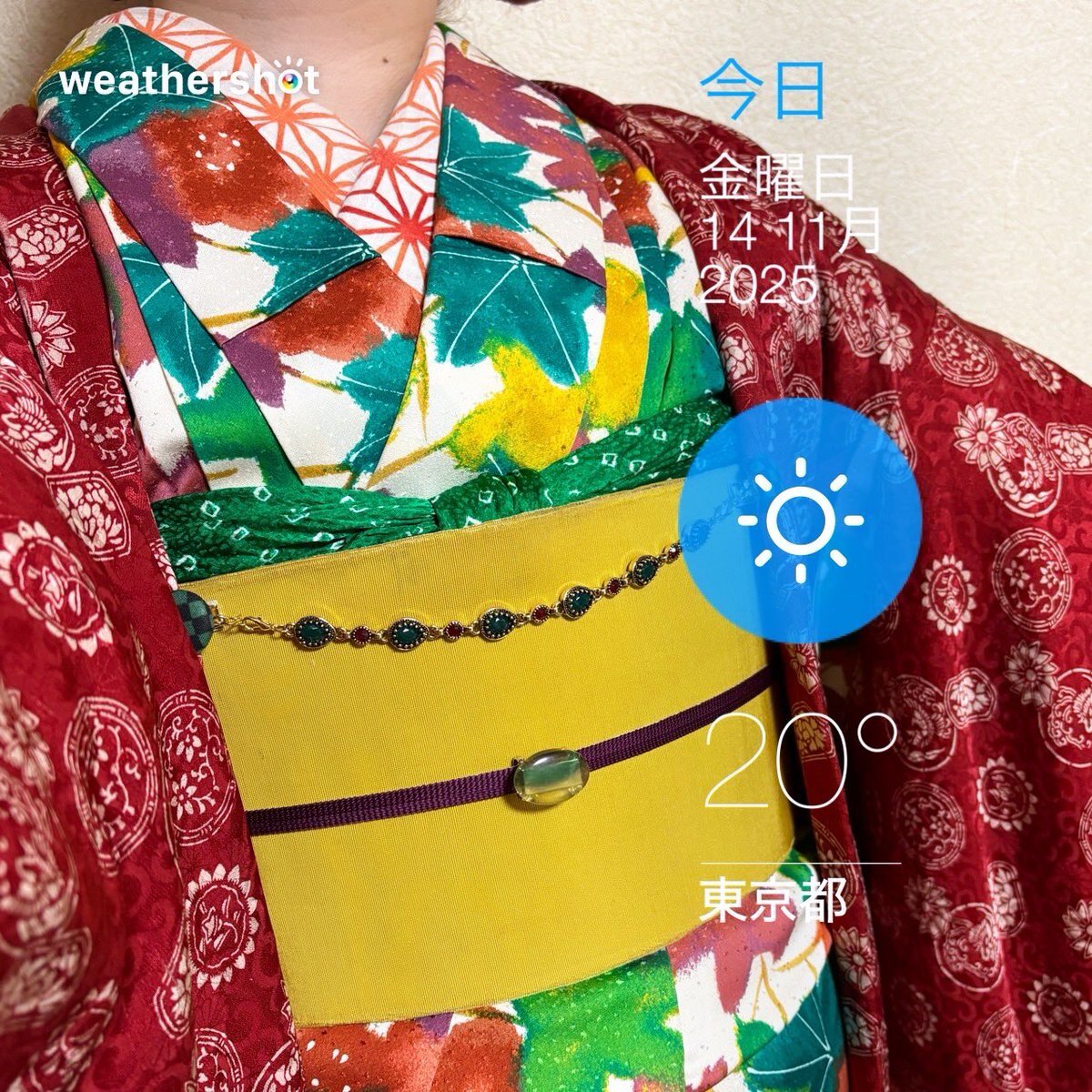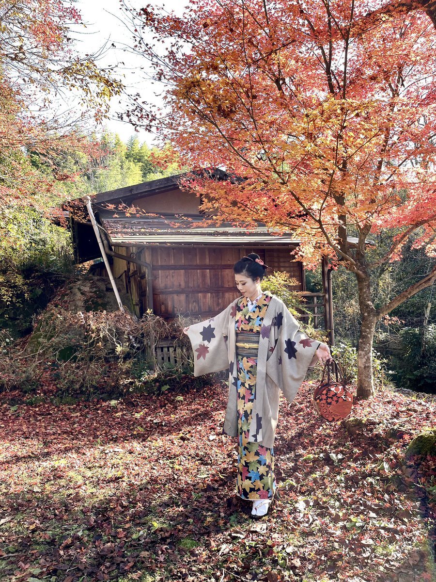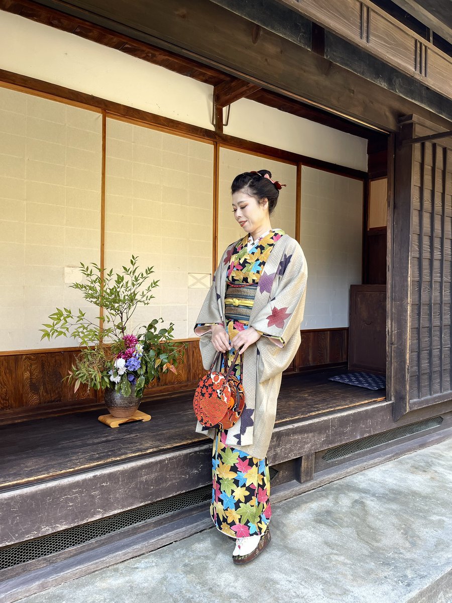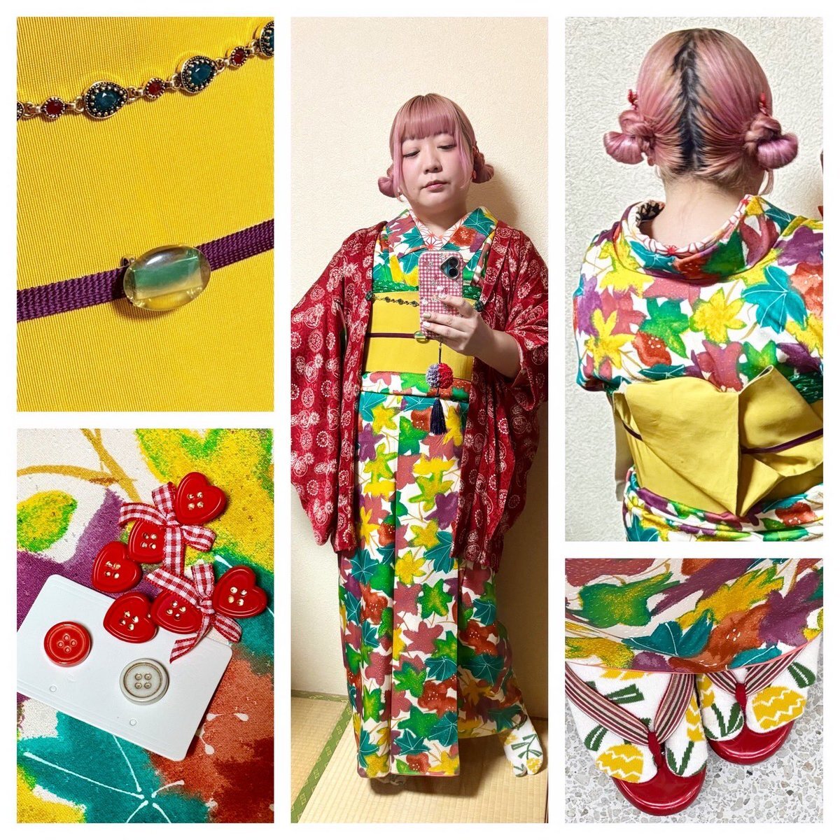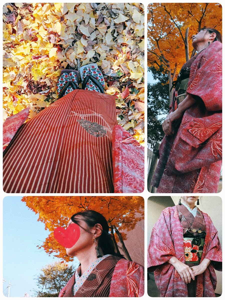 #今日の着物 紅葉 #着物 に芥子色半幅帯を貝の口結び。丸モチーフ 羽織。 着物 #kimonotento 帯 #キモノ葉月 フローライト帯留 #petit_sucre_ 羽織 骨董市 羽織紐・ボタンヘアクリップ SHEIN ボタンピアス #odd_massimo 顔撮り損ねた🤡 いい石の日💎 pic.x.com/eNmyKrgXRR x.com/angel_hinabun/…