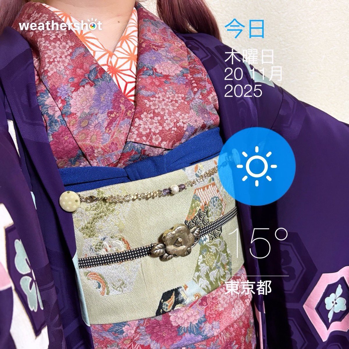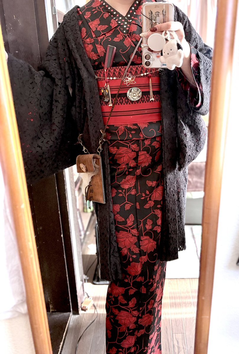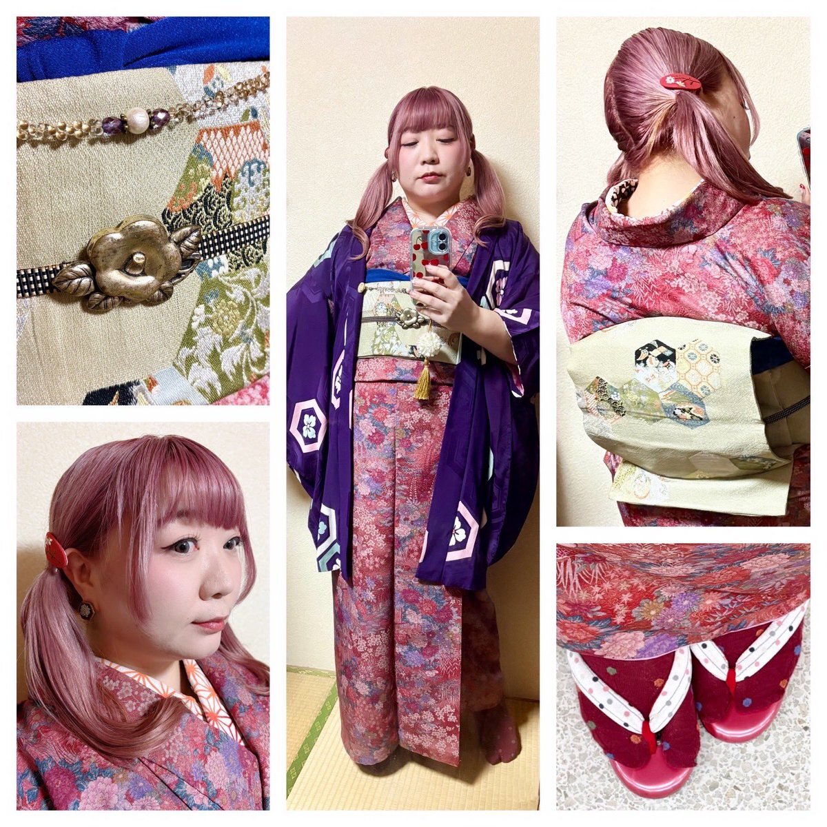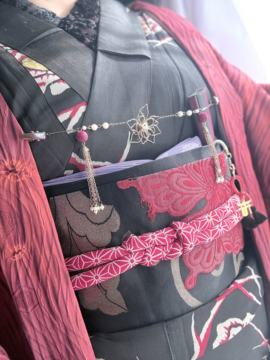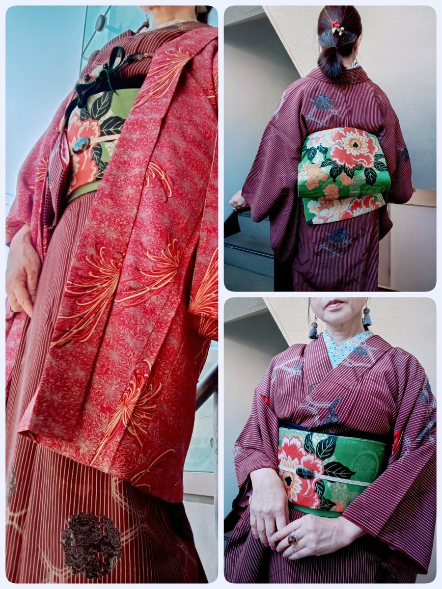 #今日の着物 蘇芳色 花 御所車 #着物 に亀甲 名古屋帯。紫 亀甲 羽織。 ꫛꫀꪝ着物 キモノセンエン 帯・羽織 きもの長谷川 羽織紐 #Nyaroworks 椿帯留ブローチ 骨董市 タイルピアス #nicokiyo スリーピン SHEIN ヒートテックステテコ(メンズ)履き始め pic.x.com/ojG1JOnS7f