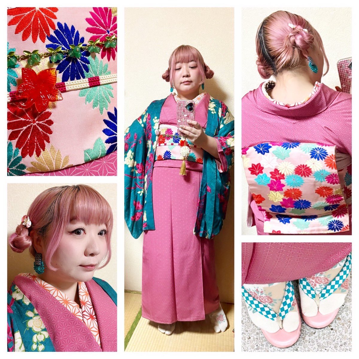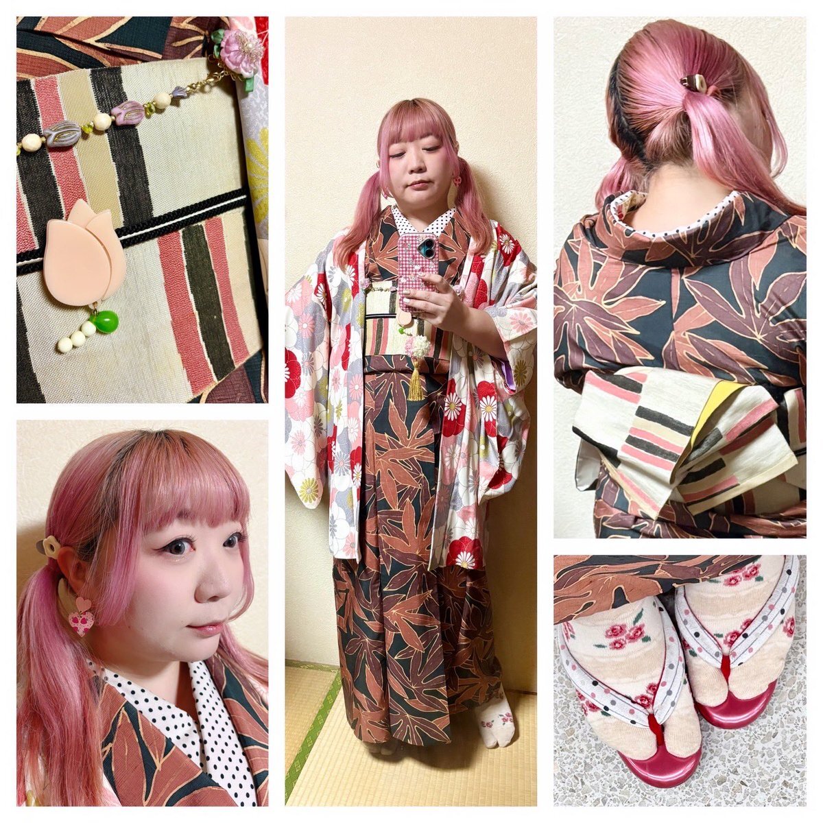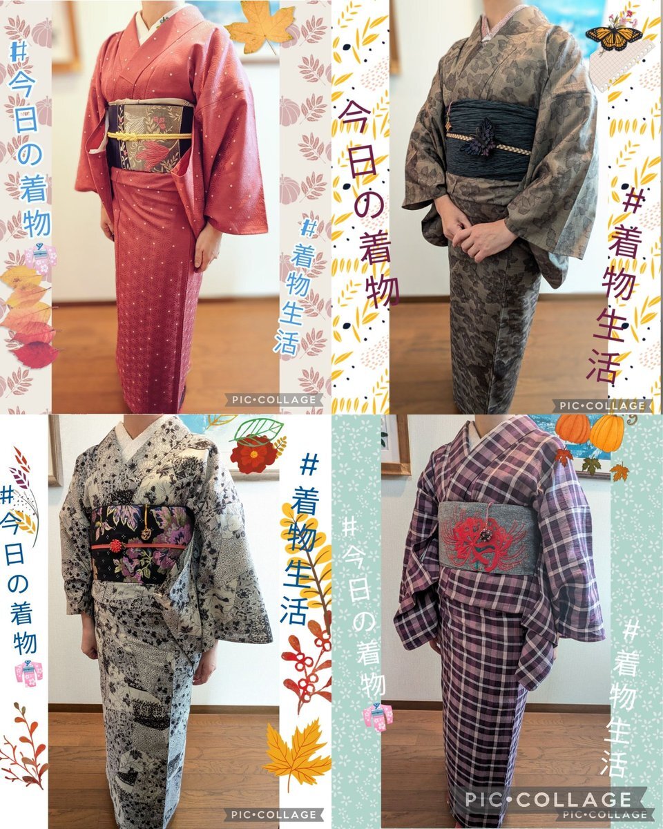 #今日の着物 ピンク 麻の葉 #着物 に菊と紅葉名古屋帯。納戸色 梅 牡丹 椿 羽織。 着物 かないや 帯 きもの長谷川 帯留 ダイソー箸置き 羽織 mimiちゃんから 羽織紐クリップ #菫コルセット 羽織紐・ヘアクリップウッドビーズピアス SHEIN 前柄紅葉🍁出そうと思ったのに逆巻きしてた😹 pic.x.com/0MqzLIkOQ7