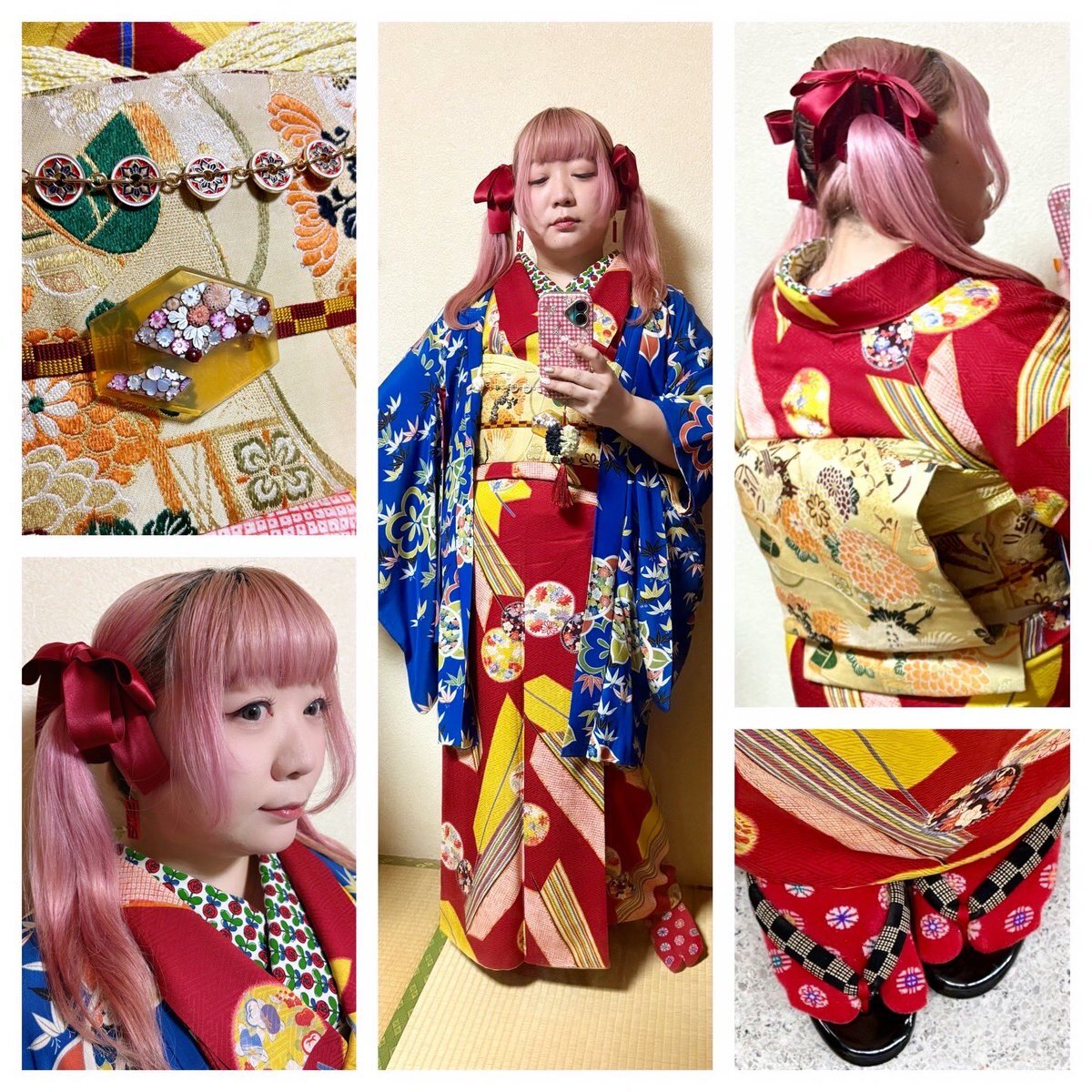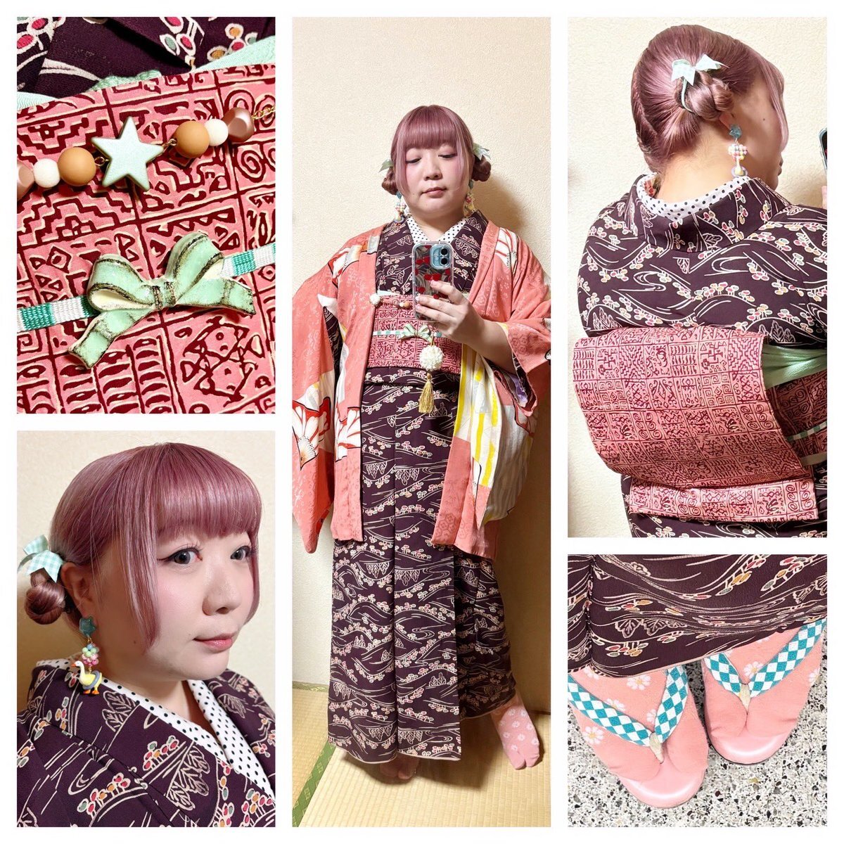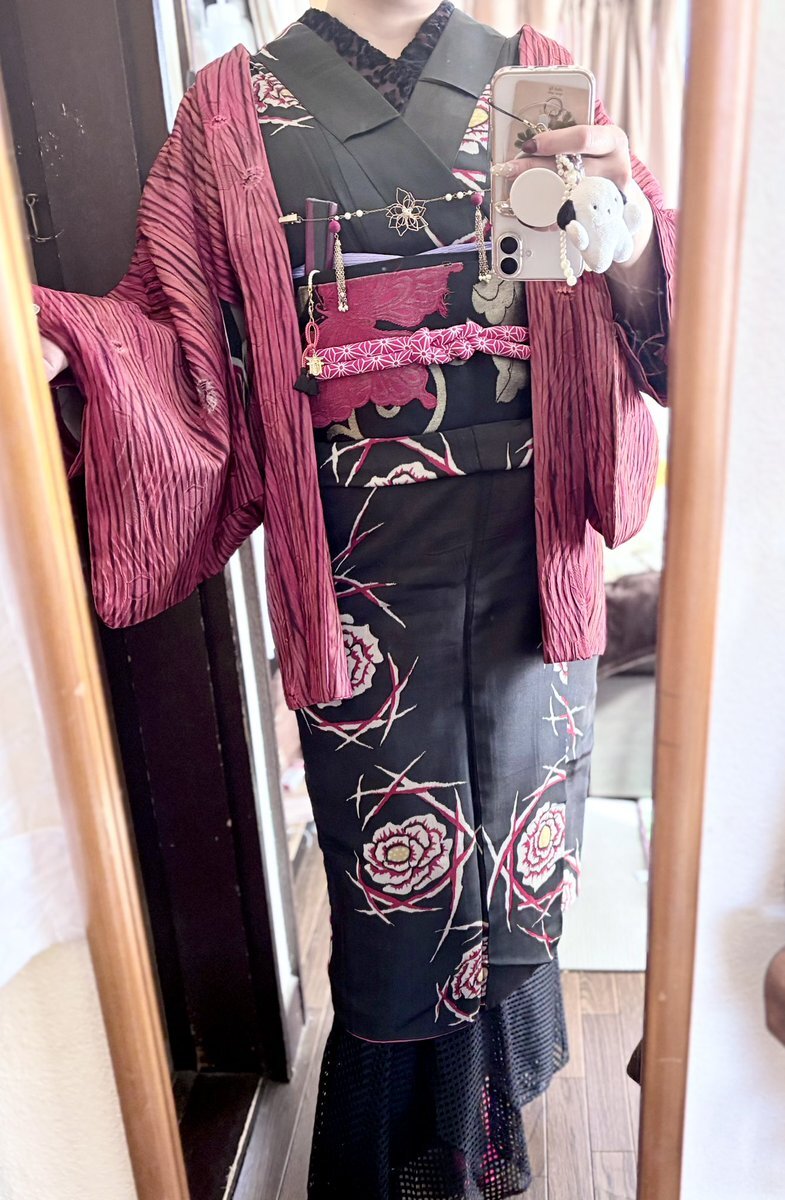 #今日の着物 ピンク 麻の葉 #着物 に菊と紅葉名古屋帯。納戸色 梅 牡丹 椿 羽織。 着物 かないや 帯 きもの長谷川 帯留 ダイソー箸置き 羽織 mimiちゃんから 羽織紐クリップ #菫コルセット 羽織紐・ヘアクリップウッドビーズピアス SHEIN 前柄紅葉🍁出そうと思ったのに逆巻きしてた😹 pic.x.com/0MqzLIkOQ7