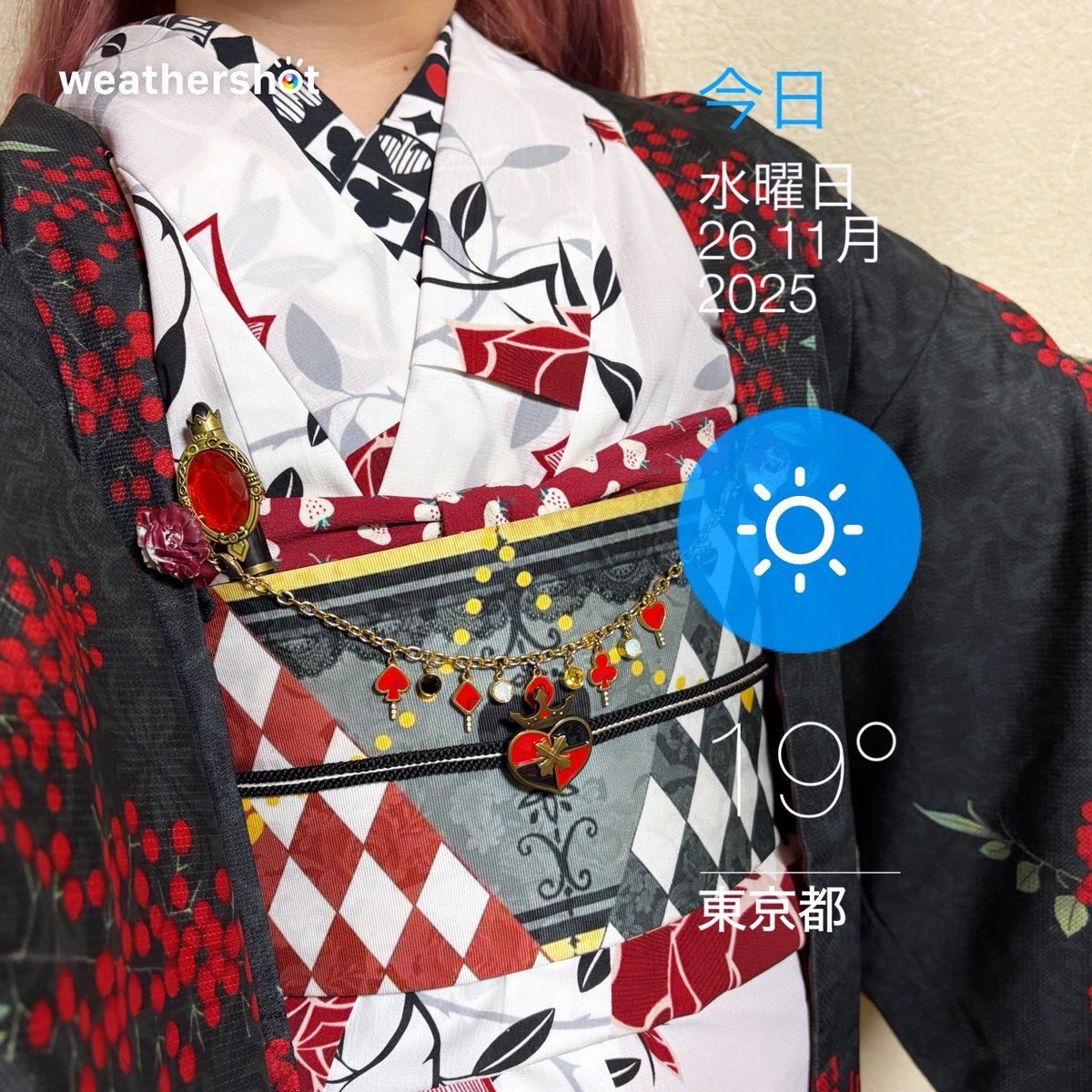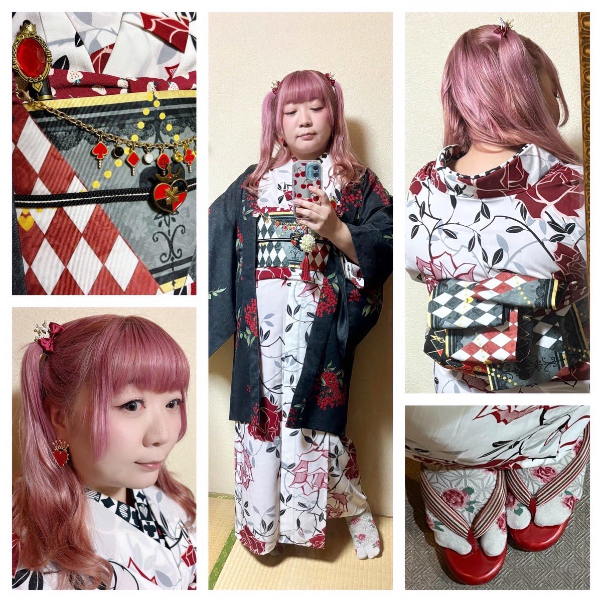 #今日の着物 薔薇 セオα #浴衣 にハートの女王半幅帯①をパタパタ結び。南天 ポリ 羽織。 浴衣 撫松庵 帯 bonita 🍓帯揚げ #amuco_kimono 帯留 ツイステ❤️🖤 羽織 京都きもの町 羽織紐クリップ #菫コルセット 羽織紐 Samantha Thavasa 半衿 ネコネコハッピー ヘアクリップ👑 水曜日のアリス pic.x.com/CdGSSYHPgr