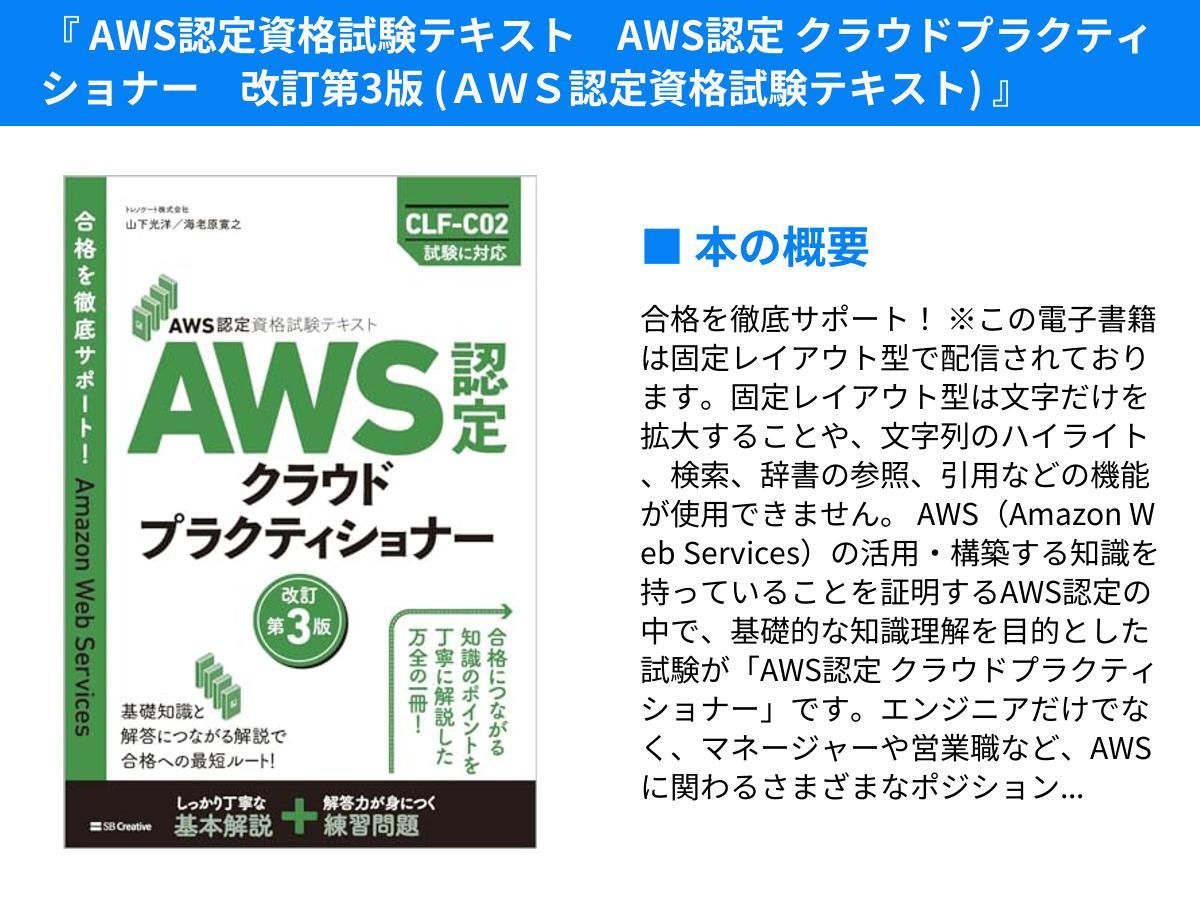 『AWS認定資格試験テキスト AWS認定 クラウドプラクティショナー 改訂第3版 (AWS認定資格試験テキスト)』 📚 amazon.co.jp/dp/4815625387?… #駆け出しエンジニアと繋がりたい #ad #今日の積み上げ pic.x.com/fjjs7EhL2e