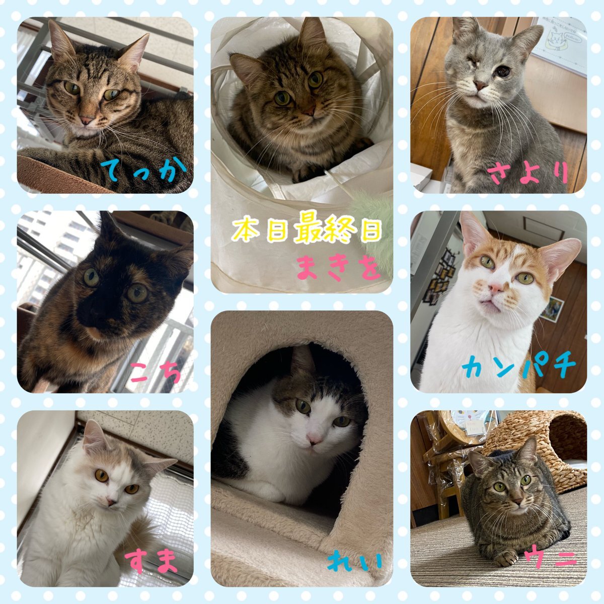 保護猫カフェヘミングウェイオープンしました☁️ 本日のメンバーは、てっか、まきを、さより、こち、れい、カンパチ、すま、ウニです🐱 まきをちゃんは本日カフェ最終日です! ご来店お待ちしております︎🩵 #保護猫カフェヘミングウェイ #名古屋 #今池 #里親募集中 pic.x.com/N8i76Peh1D