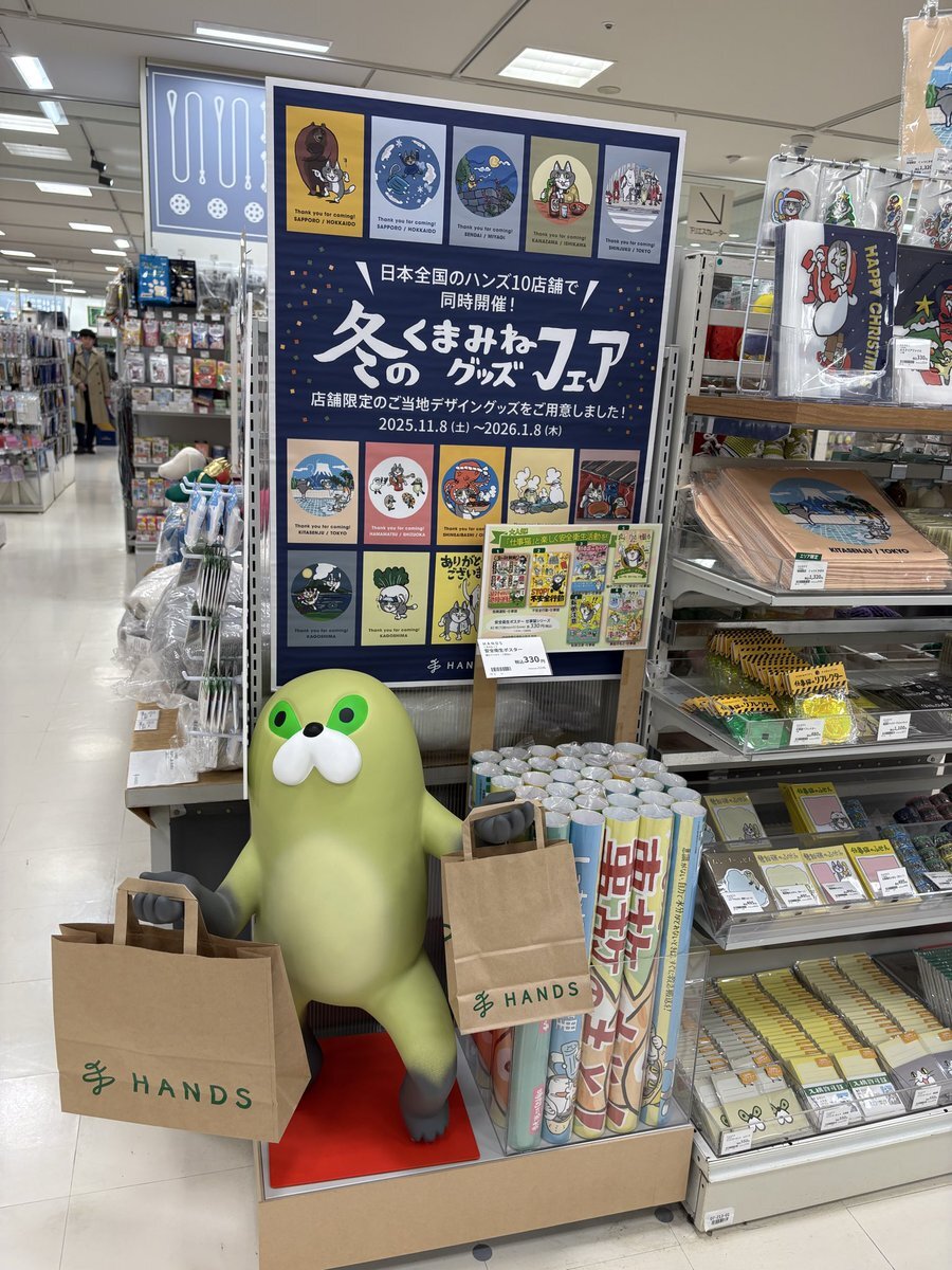 冬のくまみねグッズフェアin北千住 朝一巡礼ヨシ!👈 ムジーナこの位置だとプリケツ拝みできず😭 続々とお客さんが来て賑わっていました🤭 #冬のくまみねグッズフェア #仕事猫 #ムジーナ #ハンズ北千住店 pic.x.com/2amGa9EMNG