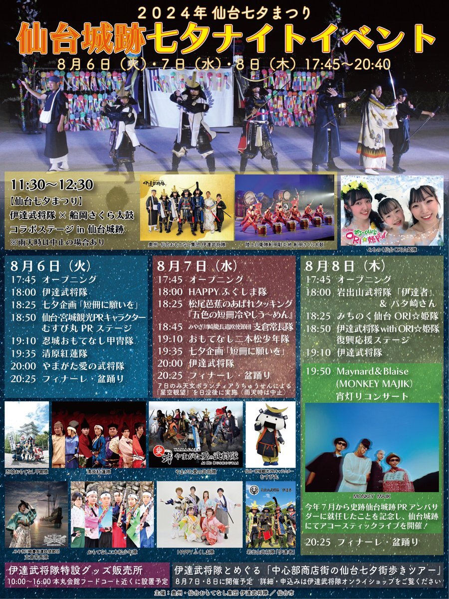 #仙台七夕 最終日! 今年の仙台城も あ!つ!か!っ!た‼️ でも 楽❗️し❗️か❗️っ❗️た‼️ 感謝✨✨✨‼️‼️‼️ #伊達武将隊 #datebusyou #仙台城跡七夕ナイトイベント #仙台城 #みちのく仙台ORI⭐︎姫隊 #MONKEYMAJIK #Maynard #Blaise #岩出山武将隊 #伊達者 pic.x.com/BhQKbdU4hI