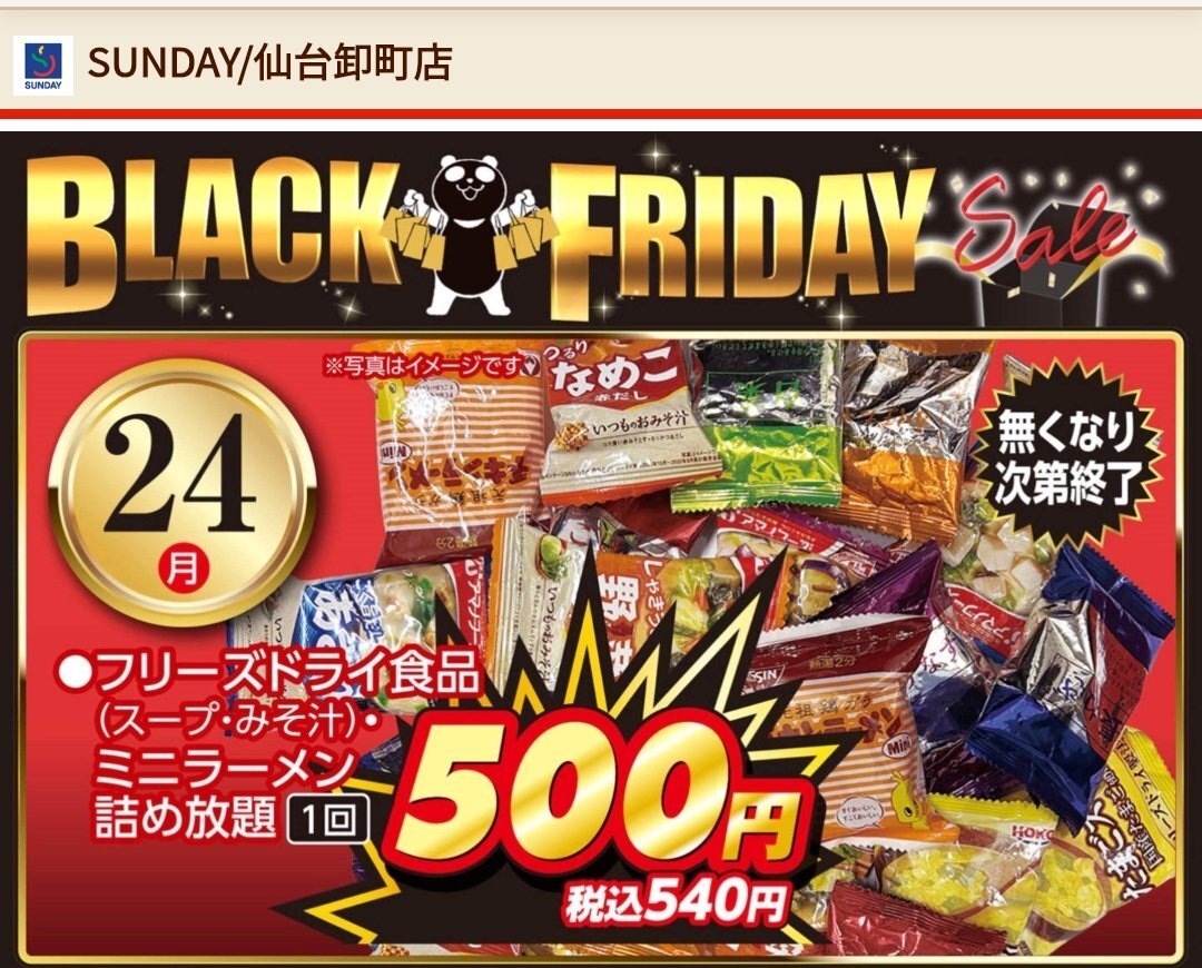 イオングループの ホームセンター サンデー 仙台卸町店さん✨️ 明日11月24日(月)限定! フリーズドライ食品の 詰め放題が開催されるみたいです🎉 #仙台 #仙台市 #イオン #BLACKFRIDAY pic.x.com/Nb4YNB7FUw x.com/date_miler_lic…