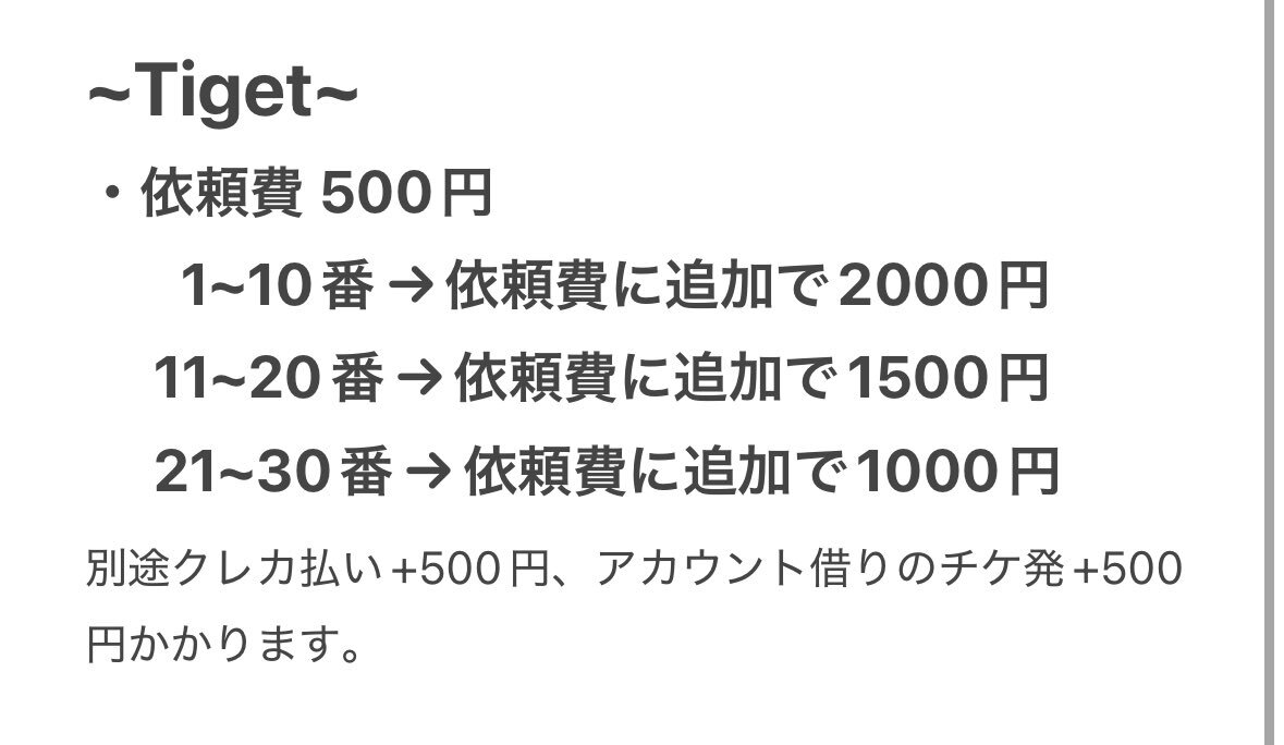 TIGET Live Pocket チケ発 ✨️チケ発代行詳細✨️ なるべく安くて早いを心がけ 依頼費変更しております!! ご依頼時は必ずこちら4枚の画像をご確認ください🙇‍♂️ ご依頼自体はDM,リプに気づけば直前まで受付可能です! よろしくお願い致します! 【チケ発日時】 【チケ種類】 【枚数】 【URL】 x.com/_cotocoto_22/s…
