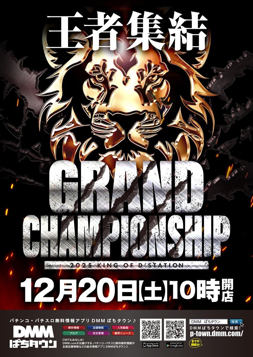 12月20日(土) 午前10時開店🕙 💥王者集結💥 📷DMMぱちタウン取材📸 👑GRAND CHAMPION SHIP🦁 各エリアから代表1店舗だけが出られる グランプリに金古店が選ばれました‼️ 代表店舗として 全力で頑張ります🔥 本日も朝からのご来店 お待ちしております✨ #キンD #金古 #代表 pic.x.com/3XCO35nqnW