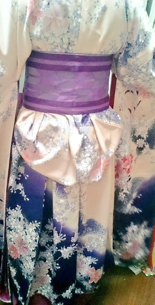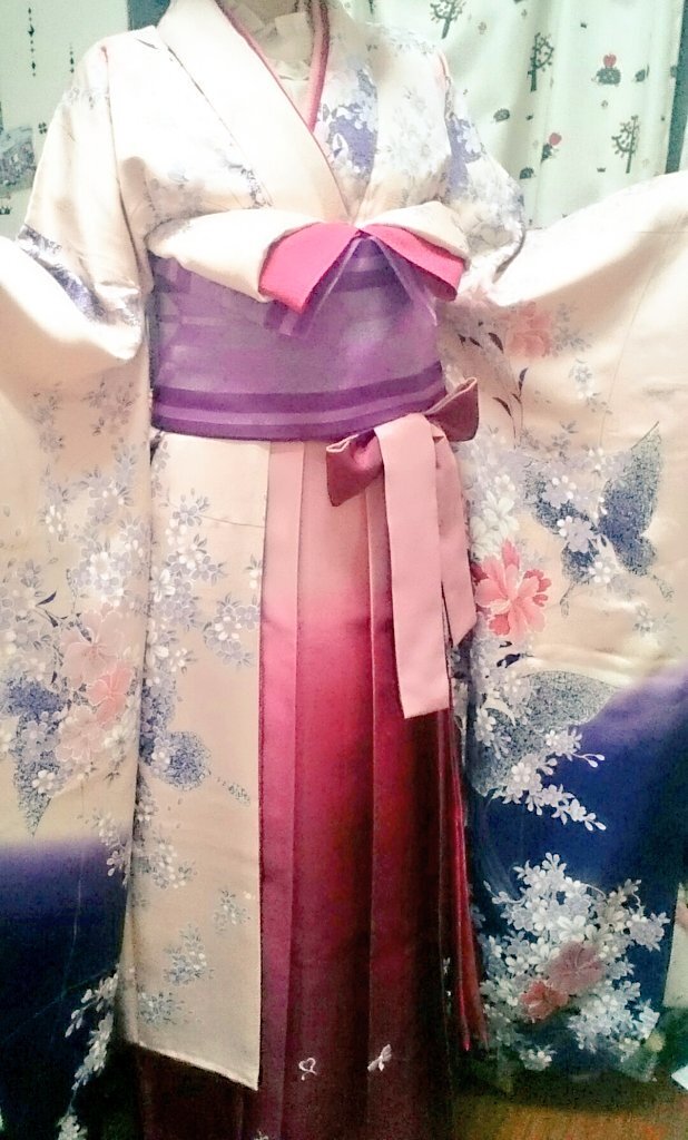 #令和 カラー振袖コーデ② 袴の上に着物 前のおはしょりを上から出して #帯結ばない帯結び で自作の「帯のつけ襟」っぽく 後ろのおはしょりはバッスル風 #川原マリア さんの左前 思い付きコーデなので小物足りない… #令和装 #令和元年を着物元年に #ツイ廃着物部 #着物自画撮部 #着物コーディネート pic.x.com/ZdDiRm5prq