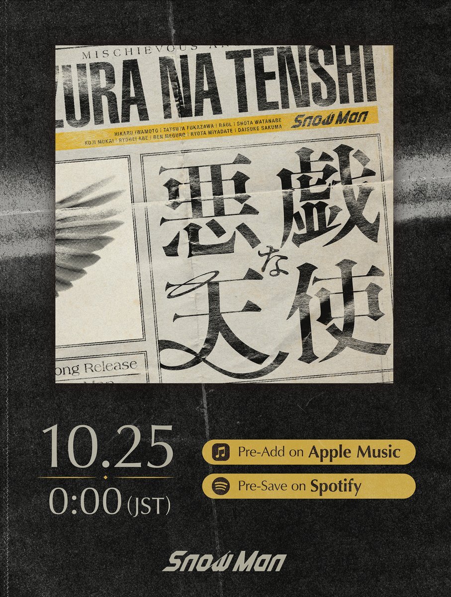 5th Album"音故知新"より #悪戯な天使 の配信が決定しました🪽 ⏳10.25 0:00(JST) 🎧Pre-Add / Pre-Save はこちら! SnowMan.lnk.to/zurana_pre #SnowMan #音故知新 #時代を巡る音の軌跡