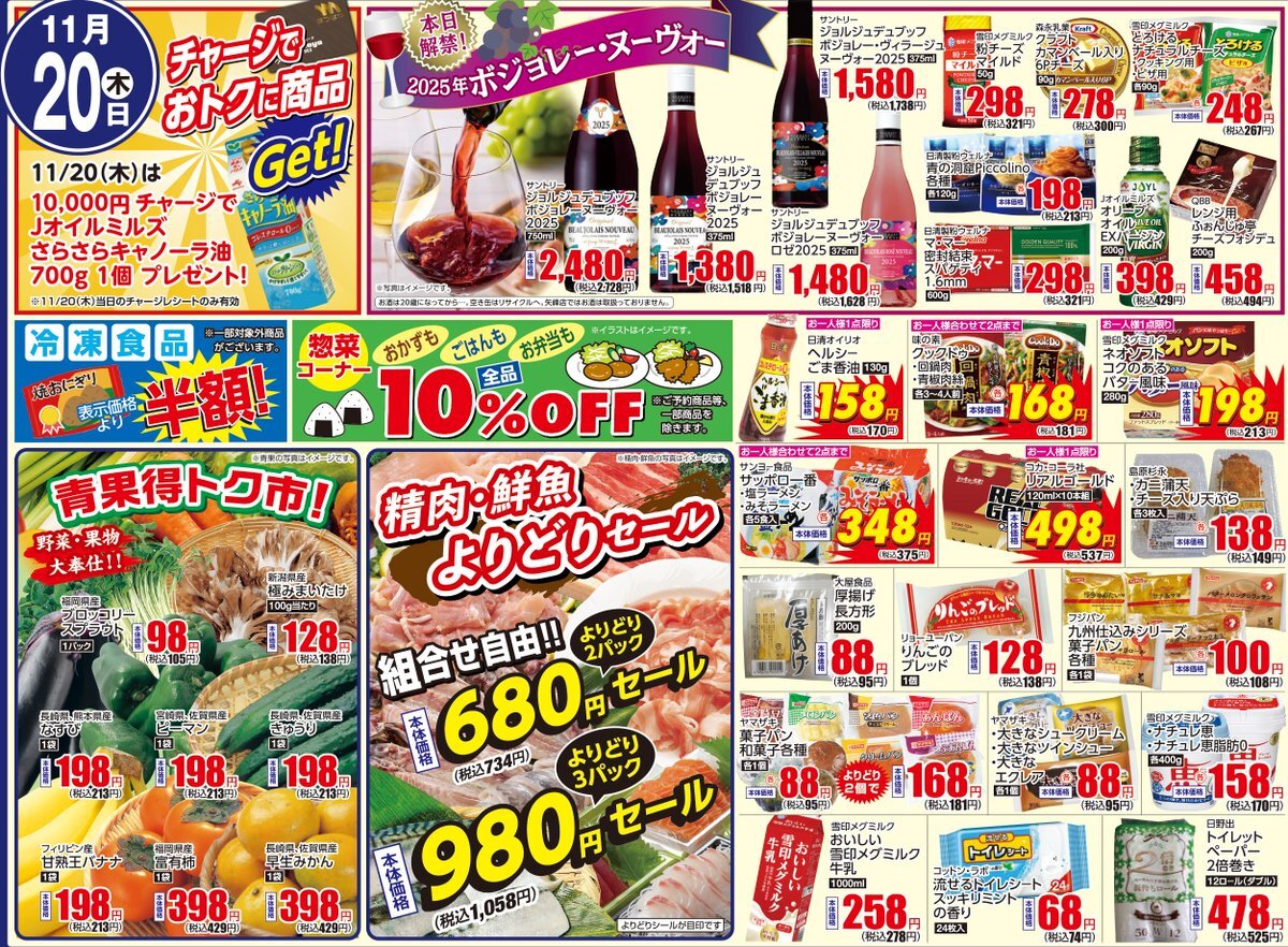 🥕青果得トク市!木曜日は企画が盛りだくさん よりどりセールもお買い得ですよ📷ボジョレーヌーボー解禁です🍷 #長崎 #佐賀 #佐世保 #伊万里 #スーパー #チャージ #よりどり#ボジョレー#ボジョレーヌーボー#ボジョレーヌーボー解禁 pic.x.com/3MaD2icrxW