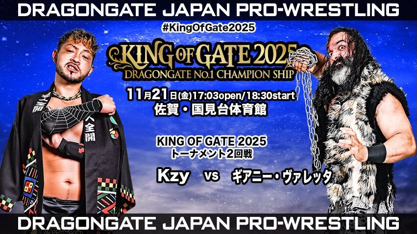 【11/21 #伊万里 大会直前情報】 #KINGofGATE2025 11月21日(金)18:30試合開始 /17:30開場 #佐賀 伊万里#国見台体育館 🎫当日券は16:30より発売予定 ▼大会詳細 blog.spora.jp/dragongate/arc… #DragonGateNetwork でKOG全公式戦配信! dragongate.live/title/?program… #DRAGONGATE pic.x.com/bz7U53kk3q