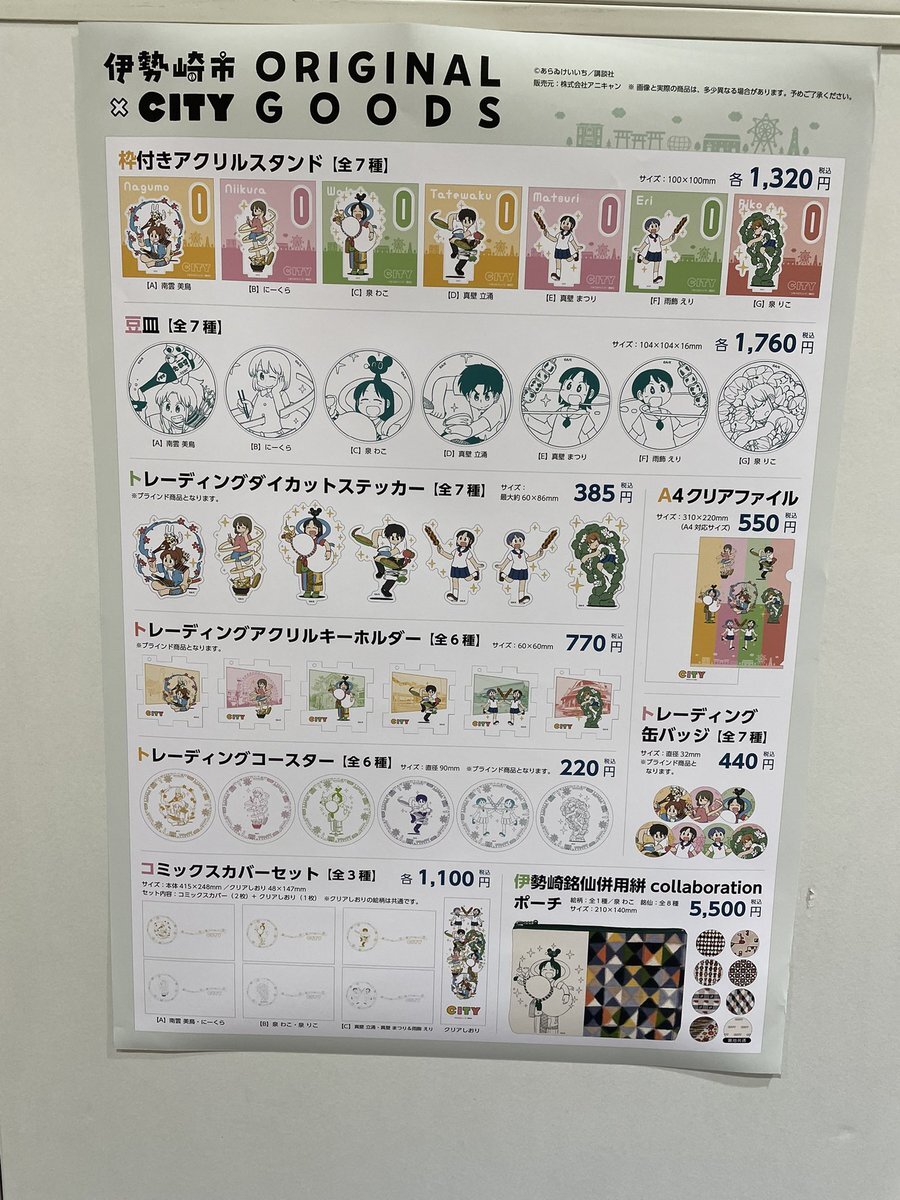 伊勢崎市×CITY イベントスタート! 📷本日のグッズ販売の様子です📷 スマークでは11/30までイベントグッズ販売とコミックカバーイラストの展示をしてます✨ 伊勢崎銘仙を使った数量限定グッズもあるのでお早めにどうぞ! city.isesaki.lg.jp/kanko_bunka_sp… #伊勢崎市 #企画調整課 #あらゐけいいち #CITY pic.x.com/7OXwYqrrd8