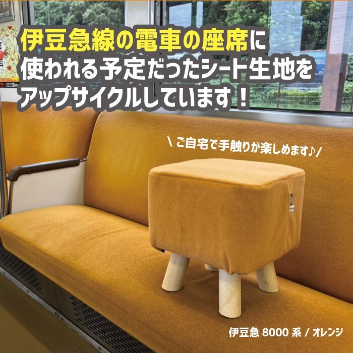 🚆【新商品発売のお知らせ】🚆   伊豆急線の電車の座席に使われる予定だった シート生地をアップサイクル💺💙   ご自宅でも手触りが楽しめる 【 #モケットミニスツール 】がら新登場❣   📢数量限定なので、売り切れ御免! お早めにチェックしてください✅   🎁先行予約特典🎁