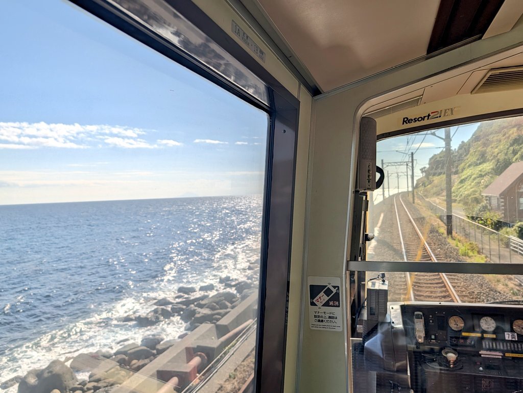 今回走行する伊豆急行線では、各所から海岸線が見える場所を走行します。視界いっぱいに海が広がる景色をお楽しみいただけます。 また天気が良ければ、伊豆大島を含めた伊豆七島をご覧いただけます。 #伊豆急行 #東京都市大学 #市場 x.com/ichibatrain_iz…