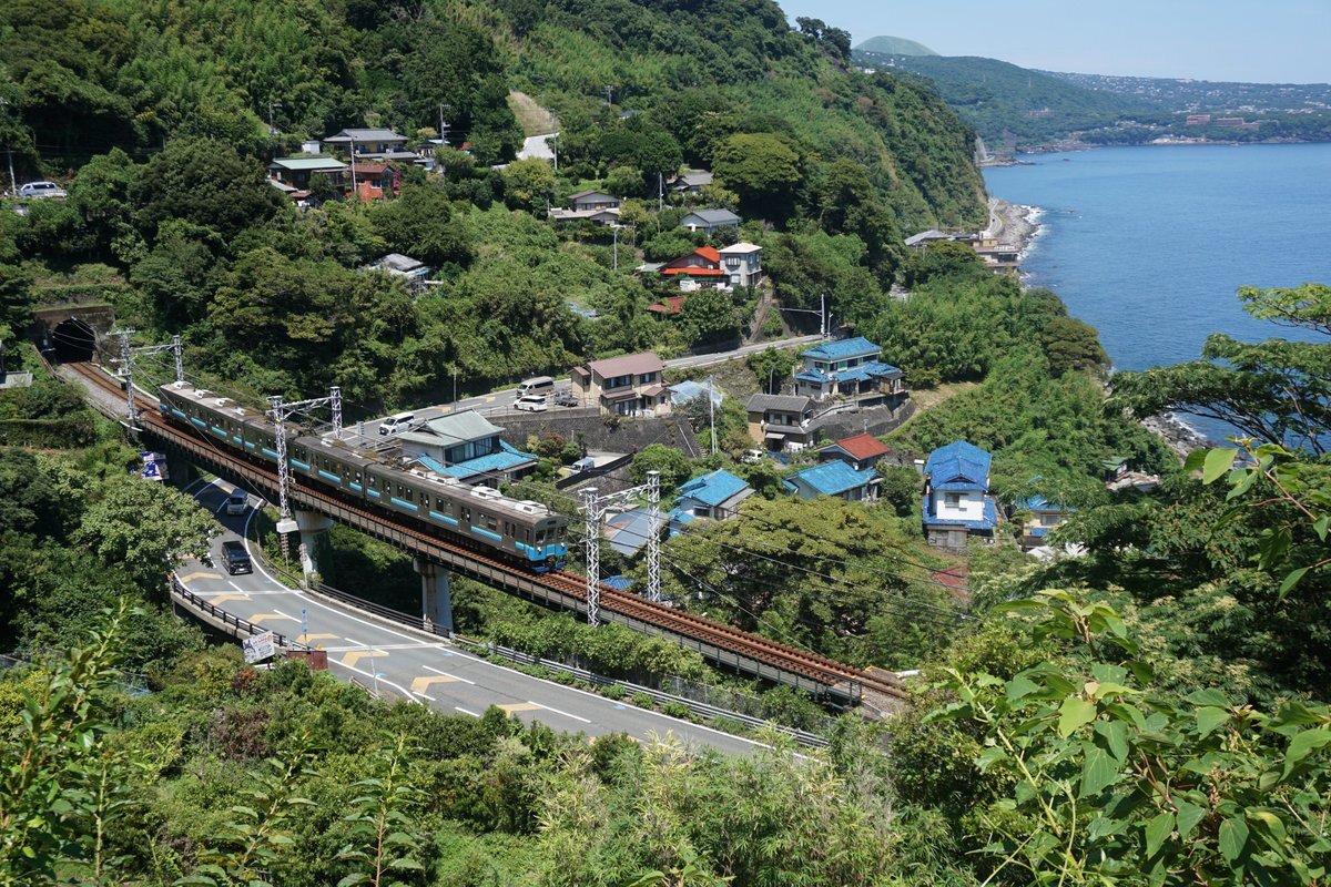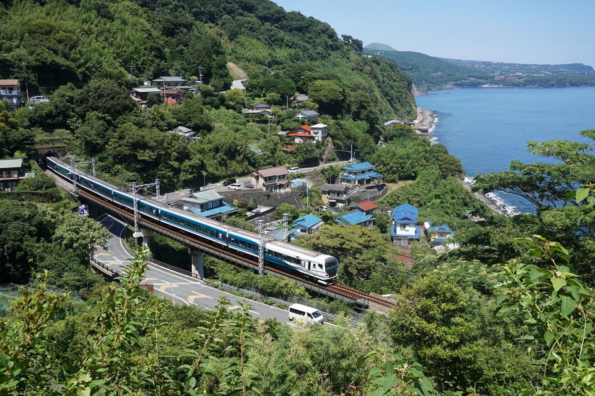 次に伊豆急行線はこんなところを走ってます。窓から広がるオーシャンビューをお楽しみいただけます。 #東京都市大学 #伊豆急行 #鉄道 x.com/ichibatrain_iz…